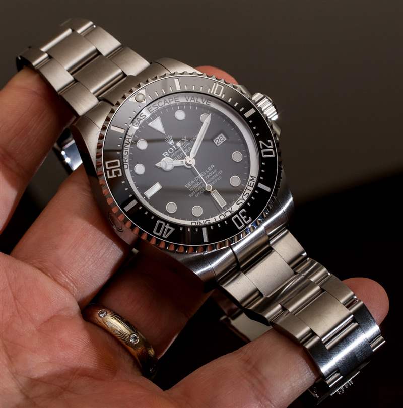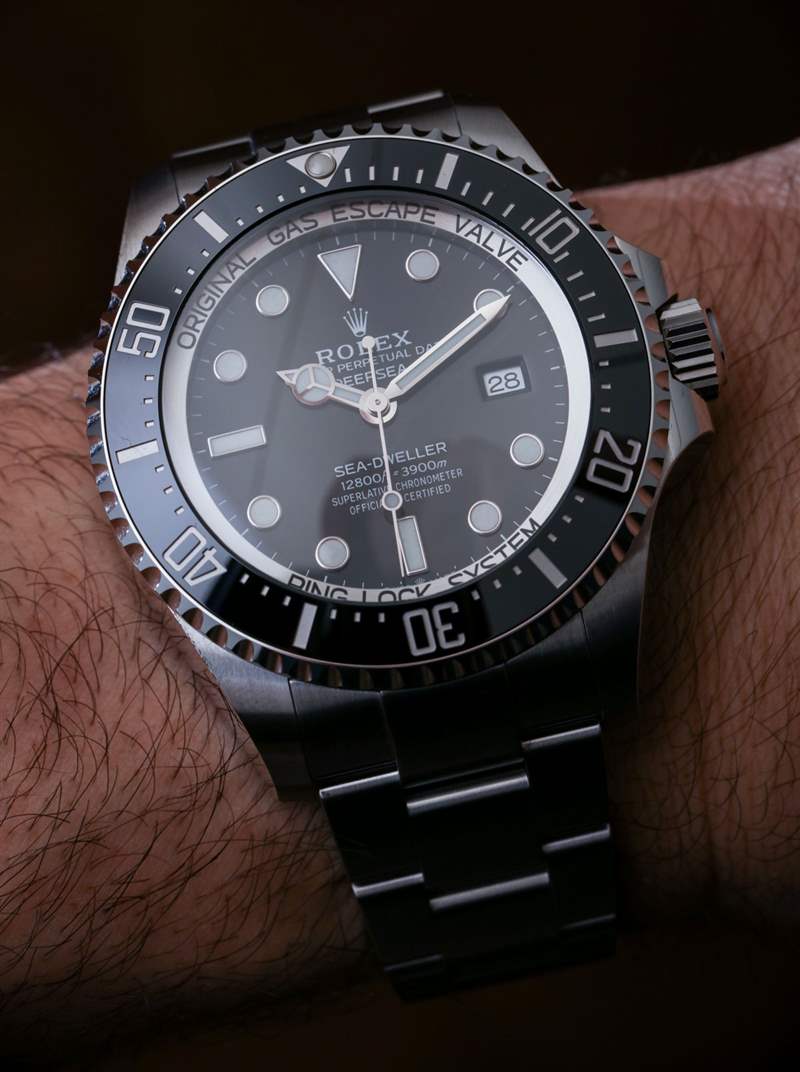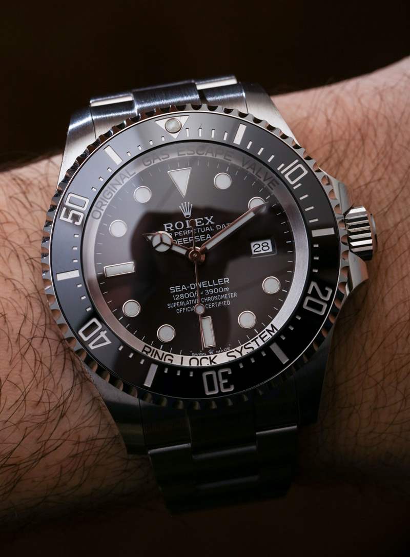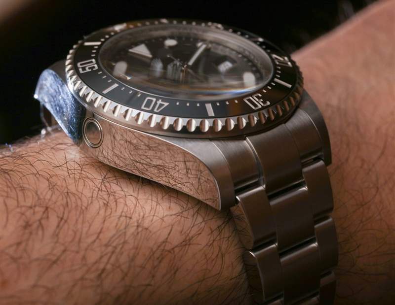 絕大多數(shù)佩戴 Deepsea 的人不會(huì)把它帶到水下——更不用說(shuō)接近 13,000 英尺了。勞力士 Deepsea 的防水深度為 3,900 米,這要?dú)w功于真正的類似潛艇的表殼結(jié)構(gòu)。勞力士制造的手表可以走得更深——但除非你發(fā)現(xiàn)自己參加了一場(chǎng)微型、可穿戴的潛水艇小便比賽,否則這幾乎無(wú)關(guān)緊要。人們傾向于佩戴勞力士 Deepsea 的原因(除了它是一臺(tái)非常酷的機(jī)器之外)是尺寸。Deepsea 寬 44 毫米,厚度幾乎是 Submariner 的兩倍,是腕間的野獸——但深受粉絲喜愛(ài)。
