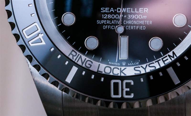 說(shuō)到文字,勞力士似乎希望 2018 年的新型號(hào) 126660 看起來(lái)與即將推出的 116660 相似,因此它保留了原始 Deepsea 最具爭(zhēng)議的功能之一。那是表盤周圍的銀色 rehaut 環(huán),其中包含兩個(gè)短語(yǔ):“Original Gas Escape Valve”(指自動(dòng)氦氣釋放閥)和“Ring Lock System”,指的是如何構(gòu)造表殼以確保如此高的水平耐水性。銀戒指本身其實(shí)是Ring Lock的一部分,是“高性能氮合金不銹鋼戒指”。老實(shí)說(shuō),當(dāng)您戴上手表時(shí),您很快就會(huì)忘記它的存在,但實(shí)際上勞力士不需要每看一眼表盤就提醒佩戴者手表包含這些零件/系統(tǒng)。我通常不會(huì)抱怨太多的文字,但我不確定 Ring Lock 上的文字是否需要存在。哦,好吧,在一個(gè)非常棒的包裝中,這沒(méi)什么大不了的。
