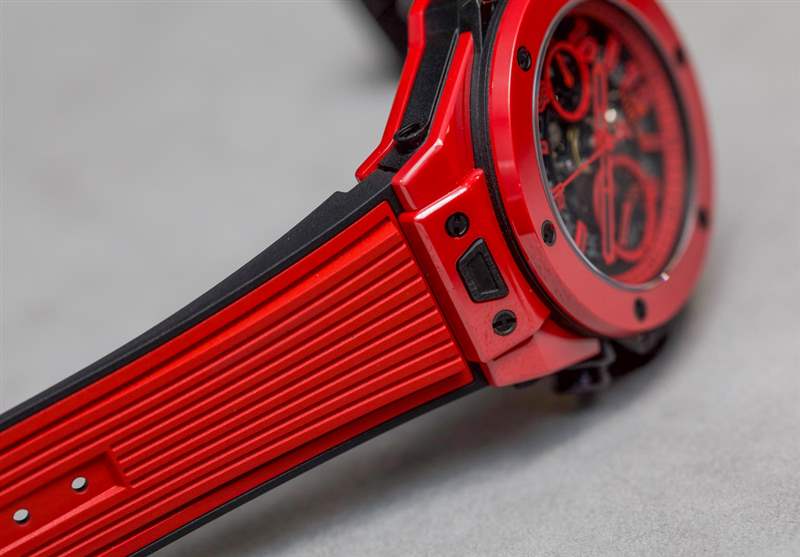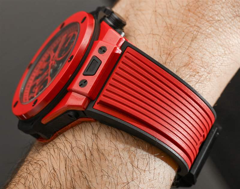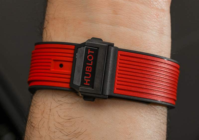 鑒于紅色陶瓷仍然非常新穎,佩戴紅色 Big Bang 手表對我來說是一種全新的體驗——這款手表在這種皮膚上的感覺肯定非常舒適。雖然人們可能會聲稱從遠處看手表似乎是由塑料制成的,但我認為這只是以前這種外觀幾乎完全由塑料制成的結果。仔細檢查或戴在手腕上時,表殼材料既不感覺也不便宜。宇舶表將這款 45 毫米寬(15.4 毫米厚,??防水深度達 100 米)的手表與黑色和紅色橡膠表帶搭配,令外觀更加完美。如果這些顏色對你說話,那么我認為這款手表將很難抗拒(當然預算愿意)。