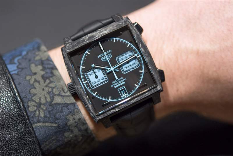 2017 年,由 Jean-Claude Biver 領導的 LVMH 手表產品部門宣布與總部位于英國的 George Bamford 建立新的戰略合作關系,以開發和生產特殊產品。著名的勞力士售后市場修改者將致力于開發 Zenith 和 TAG Heuer 等品牌經典型號的高端時尚版本。Bamford 的大部分工作都在修改現有的手表,但 2018 年,豪雅表宣布了第一款由 Bamford 設計的時計,將被建造和修改。這款腕表是著名的TAG Heuer Monaco 腕表的腕上版本,采用碳纖維表殼,帶有電藍色調。它附帶 Bamford 成本溢價,但由于它是與 TAG Heuer 合作構思的,因此最終結果的質量從未像現在這樣好。8,100 美元?tagheuer.com