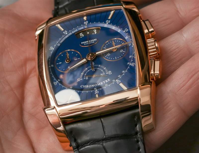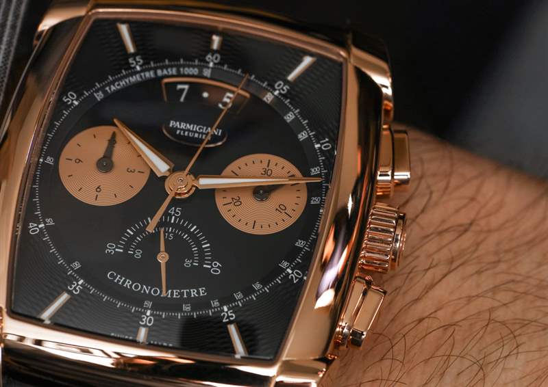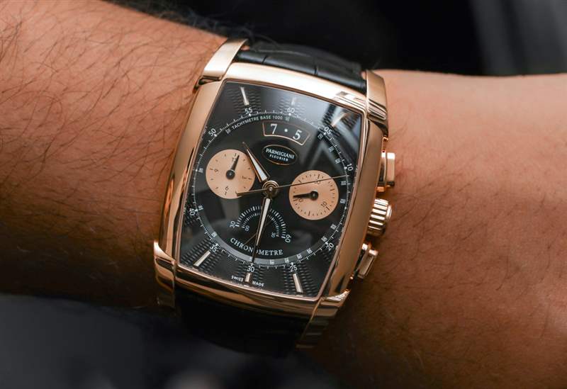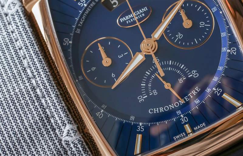 盡管表殼呈酒桶形,但帕瑪強尼將表盤本身設計為圓形,在手表正面的主表盤周圍有一個時標框架和表盤紋理。我們覺得這似乎在角色和功能之間取得了很好的平衡。我們甚至贊揚 Parmigiani 頑固地維護“開放”日期窗口,這是一個難以正確實現的設計元素 – 并且被許多其他尋求將其實施到表盤設計中的品牌正確地放棄了。正確集成后,打開的日期窗口可以彎曲,允許表盤上的設計元素不會過于方形,從而有損于表盤上其他彎曲元素的美學和諧。