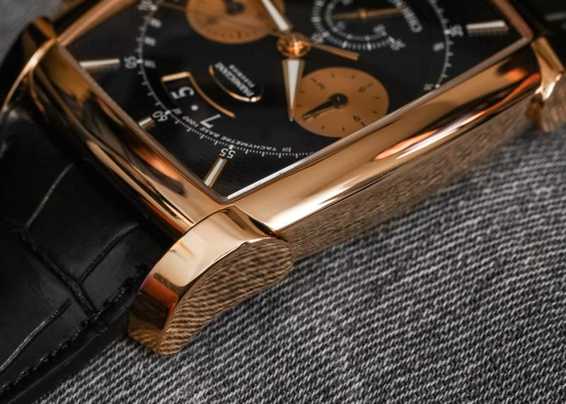 除了 Kalpa Chronor 中的黃金機芯外,它還有一個純金表盤(而 Kalpagraphe Chronometre 只有黃金時標和指針)。兩者的表盤在結構上都非常高品質,細節非常細致,每個表盤的視覺設計略有不同。這些新款 Kalpa 手表戴在手腕上的尺寸比它們可能建議的尺寸要大一些——我們建議將它們用于中到大尺寸的手腕。否則,較大的表耳結構會超出較小尺寸的手腕,例如我自己的手腕。在正確尺寸的手腕上,40.4 毫米寬和 48.2 毫米長的酒桶形表殼看起來特別令人印象深刻。對于仍然喜歡設計曲線的人來說,它是反圓形的。每只手表的厚度都不是太大,只有 14 毫米。以實心 18 克拉玫瑰金制成,精心打磨的表殼防水深度達 30m。Parmigiani 特意提到了他們如何不鉆出任何黃金材料來省錢(就像其他一些品牌一樣)。當您將 Kalpa Chronor 或 Kalpagraphe Chronometre 握在手中時,它會顯示(感覺),因為重量令人印象深刻(純金寶貝!)。