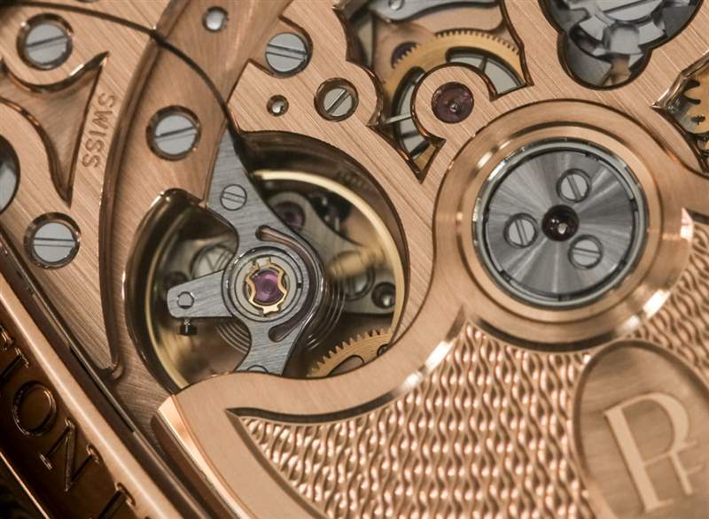 操作計時機制很可愛,我很欣賞帕瑪強尼從性能到裝飾,以及簡單的操作,在機芯的所有重要角度都全力投入。雖然 PF362(帶有金轉子)存在于價格較低的 Kalpagraphe Chronometre 手表中,但 PF365 位于 Kalpa Chronor 中,其幾乎完全采用黃金材料構造和獨特的橋板設計。PF365 顯然是這兩款機芯中更獨特的一款,它非常強調令人印象深刻的視覺效果(和金色)。