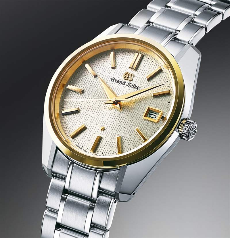 兩款限量版 9F 25 周年紀念腕表中的第二款是 Grand Seiko SBGV238。更限量(限量 600 枚),這款手表在視覺上與 SBGT241 不同,這有點奇怪,因為它們是在同一個動作中首次亮相的。SBGV238 采用精鋼和 18ct 黃金表殼,寬 40 毫米,厚 10 毫米(防水深度達 100 米)。雖然大部分表殼和表鏈都是鋼制的,但這款表款的金色表圈配有匹配的金色指針和時標。此外,與其他型號不同的是,這款表盤只有日期——但同樣酷炫的 25 周年紀念表盤。兩款手表的表盤上方都是 AR 涂層藍寶石水晶。根據 Seiko 的說法,SBGV238 手表的表殼靈感來自 1967 年 Grand Seiko 44GS(Grand Seiko 系列中的其他手表也有這種表殼設計)。