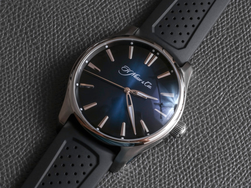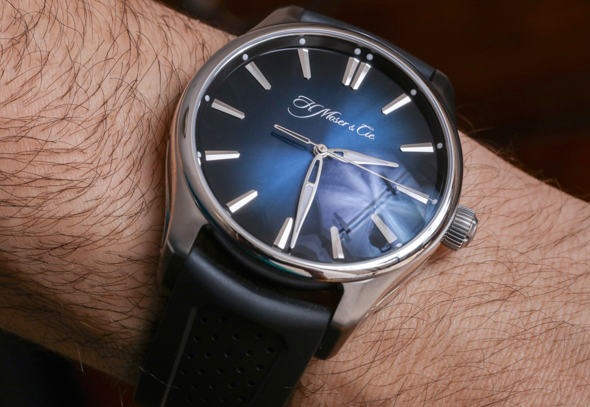 從視覺呈現來看,H. Moser & Cie 在過去幾年中明顯改進了外觀,引起了許多手表愛好者的共鳴。藍色 fumé(煙熏色)表盤有一點光澤,而時標和指針在光線下急切地閃耀。這與陡峭的圓頂藍寶石水晶相結合,真的很吸引眼球。Pioneer Center Seconds 手表永遠不能被稱為避免引起關注的東西。
