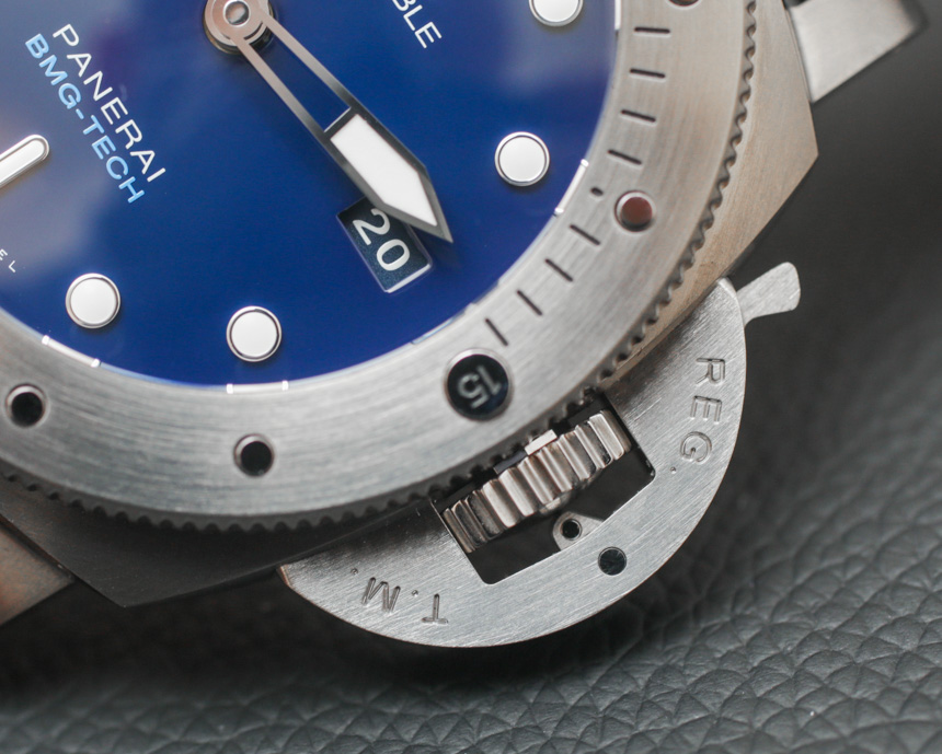 其他品牌使用各種類型的合金,例如表殼。我記得 Audemars Piguet 有時會使用一種他們稱之為“Cermet”(陶瓷金屬)的材料來制作表圈,也可能是整個表殼的材料。金屬陶瓷的優(yōu)點與 BMG-TECH 相似,因為它像陶瓷一樣堅韌,但具有金屬的視覺外觀。金屬陶瓷的顏色有點深,所以它讓我相信塊狀金屬玻璃對于這款沛納海 PAM 692 來說可能有點不同。表背是鈦,這也恰好是表殼中最多的部分細節(jié)。我的直覺告訴我,雖然大塊金屬玻璃是一種引人注目的材料,但它比大多數(shù)金屬更難加工(因此也更昂貴)。