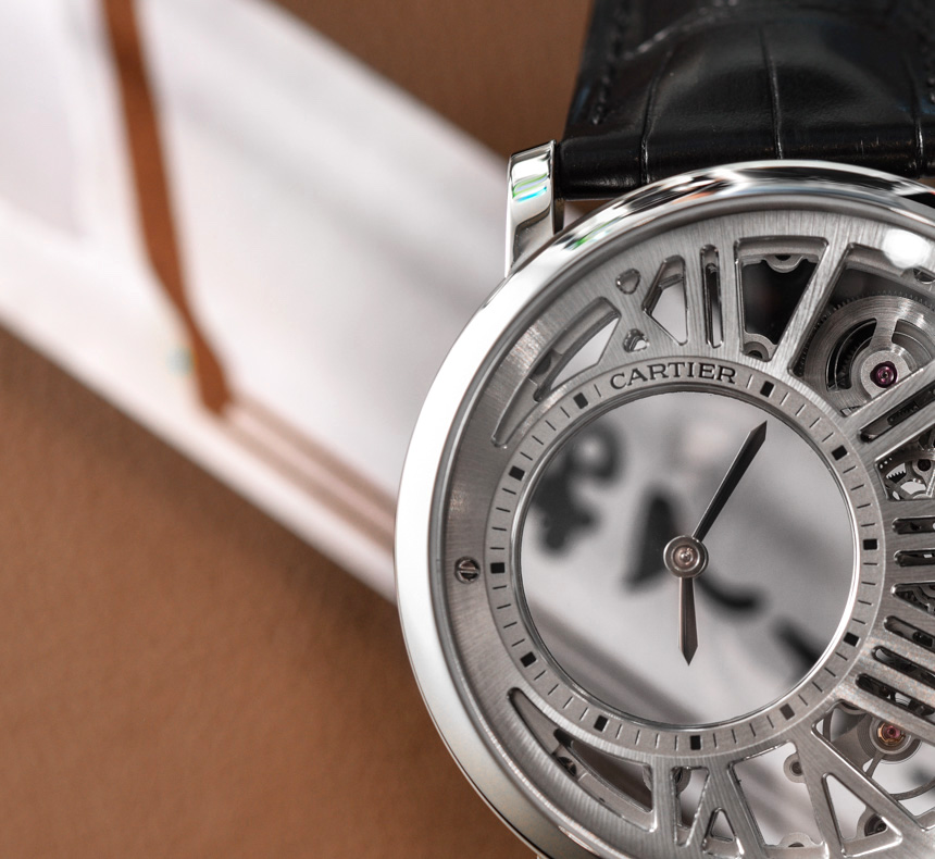 這讓我相信,在大多數情況下,除了為特殊客戶打造的“獨一無二”的作品之外,像 Rotonde de Cartier Mysterious Hour Skeleton 這樣的手表很可能代表了卡地亞為男士制造的頂級產品。這款手表實際上是卡地亞現有三款產品的組合,其中包括 Rotonde 風格的表殼、時針和分針位于透明平面上的“神秘”機芯,以及內部的鏤空制造 9981 型機芯(后來成為 9983 型機芯)手動上鏈機芯。