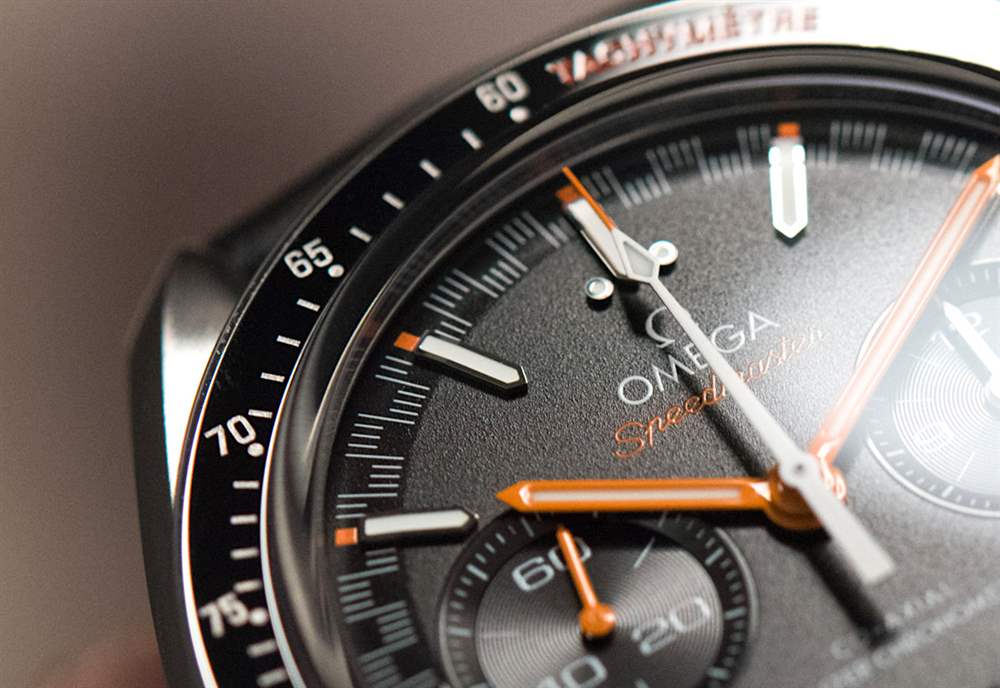 我提到邊框是新的。有兩種類型的邊框材料,陶瓷或氮化硅(取決于顏色,因為后一種材料用于灰色邊框)。然后,歐米茄使用液態金屬、Ceragold 或搪瓷作為測速儀表圈標記和文字。對我來說最有趣的是帶有白色琺瑯的黑色陶瓷表圈。后者用于白色表盤版本的表圈文字,因為白色文字需要明亮、永久的顏色來匹配表盤。對我來說,這些是最有趣的表盤(白色和黑圈子表盤),根據歐米茄的說法,每個烤琺瑯表圈都有五層琺瑯。