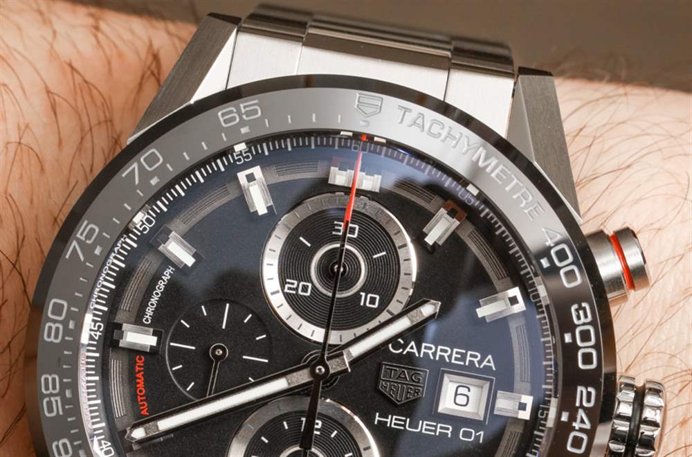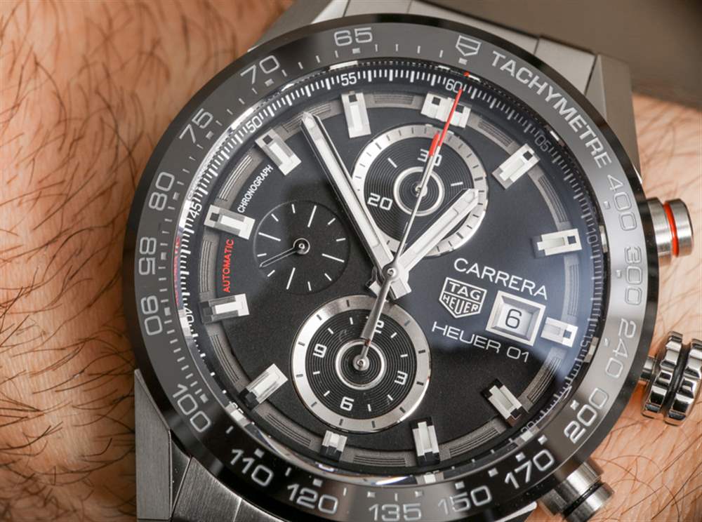 說到泰格豪雅 Carrera Heuer 01,這款特殊的型號是該系列中最保守的型號之一。大多數泰格豪雅 Carrera Heuer 01 腕表都以鏤空表盤和狂野現代的設計為標志。我認為它們是“嬰兒 Hublot Big Bang”手表——實際上有很多原因。這款特別的泰格豪雅 Carrera Heuer 01 沒有鏤空表盤,在傳統和現代設計之間提供了一種特殊的混合外觀。aBlogtoWatch 之前在此處對更現代的 TAG Heuer Carrera Heuer 01 腕表進行了全面評測。