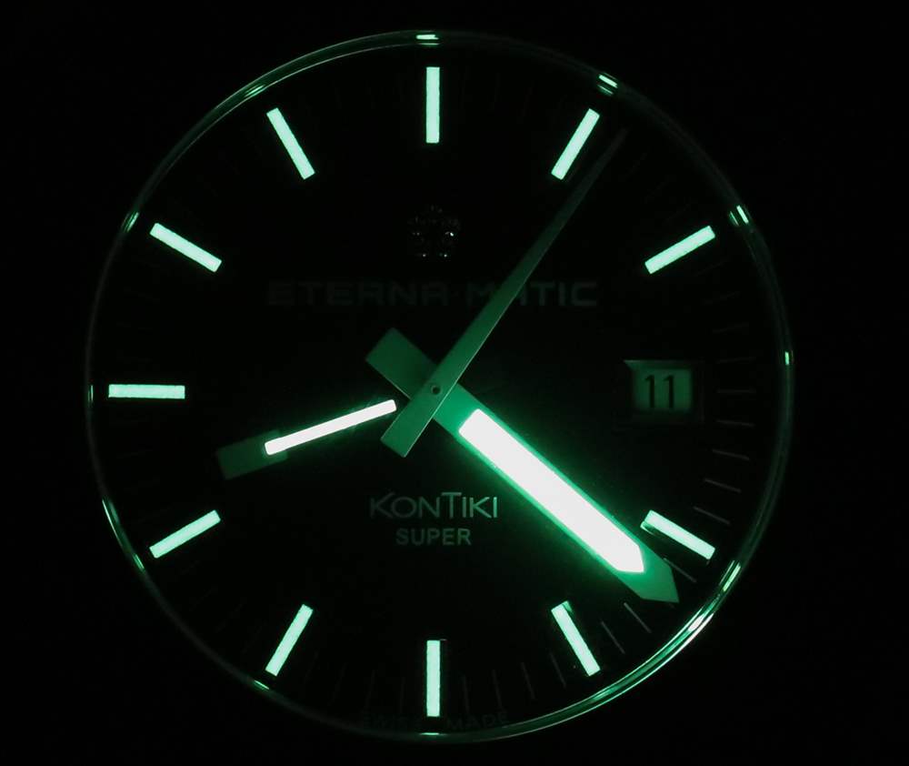 有趣的是,這些案例并不完全相同,但實際上在形狀和尺寸方面略有不同。例如,一個區別是凸耳的長度。我說這一切只是為了指出,Eterna 不只是為這些更新的非限量版 Super KonTiki 使用相同的表殼和新的表盤/表圈。