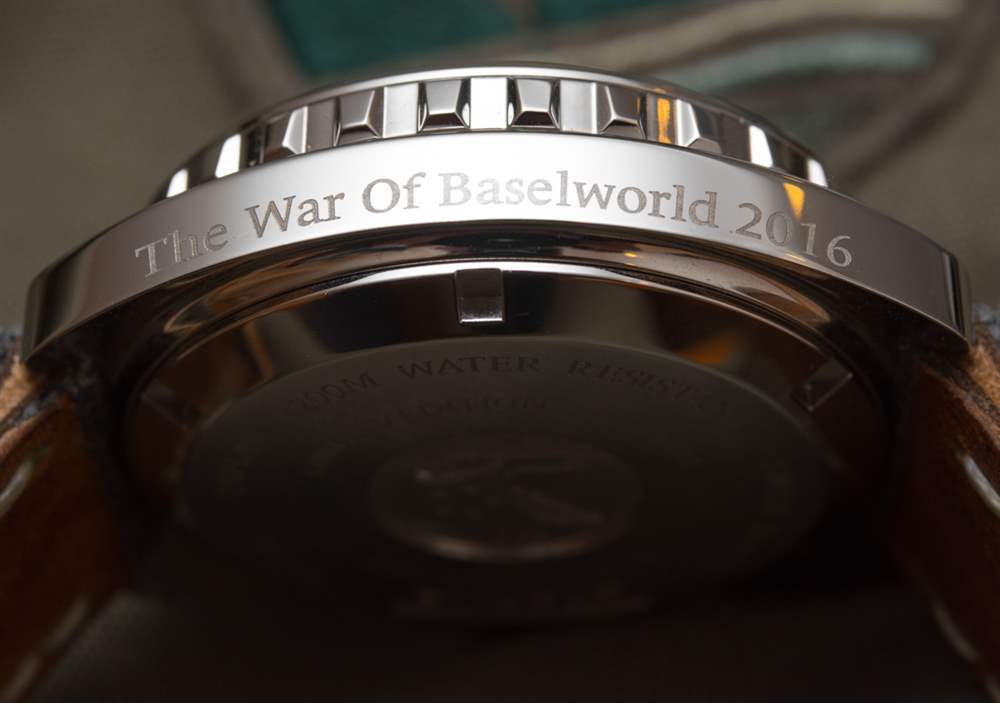 因此,為 aBlogtoWatch 的戰斗頑強的戰士們打造了一些特別版本的 Eterna Heritage Super KonTiki 1973 限量版腕表,這讓我感到非常高興,他們熱衷于為世界帶來鐘表民主和鐘表自由。我們首先做的是讓 Eterna 在表殼的一側刻上“The War Of Baselworld 2016”。在案例的另一面,我們為獲得它的各個團隊成員個性化了每塊手表,并附上了他們首選的人造軍事頭銜。一些成員甚至選擇用希伯來語書寫他們的“等級”,以向手表的背景致敬。我被提名為“阿里爾·亞當斯將軍”,這是我無法拒絕的榮譽。