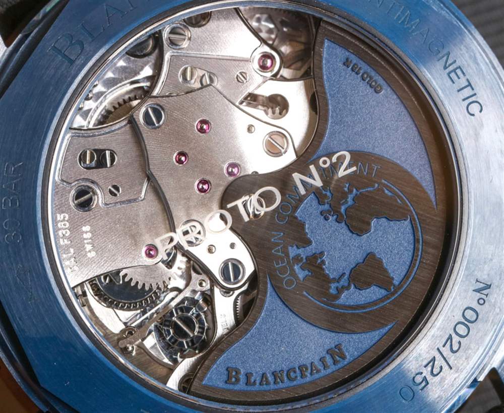 F385 機(jī)芯的動力儲存為 50 小時,計時碼表還具有飛返復(fù)雜功能。它由 322 個零件制成,顯然是專門固定在五十噚深海飛返計時碼表的表殼上,以達(dá)到防震的目的。最后,該機(jī)芯采用硅游絲,隨著時間的推移增加了耐用性和準(zhǔn)確性的好處。