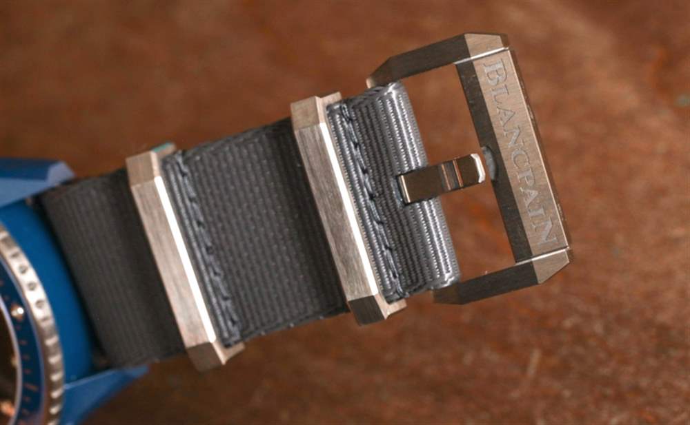 該品牌提供兩個版本的寶珀五十噚深潛器 Flyback Chronograph Ocean Commitment II,無論是灰色紡織/帆布表帶,還是這款帶有灰色鈦金屬硬件的高端 NATO 風(fēng)格表帶。這是一條非常漂亮的 NATO 風(fēng)格表帶,但它確實有 23 毫米寬的尺寸,而且在如此高端的手表上也感覺有點奇怪(即使它看起來很酷)。