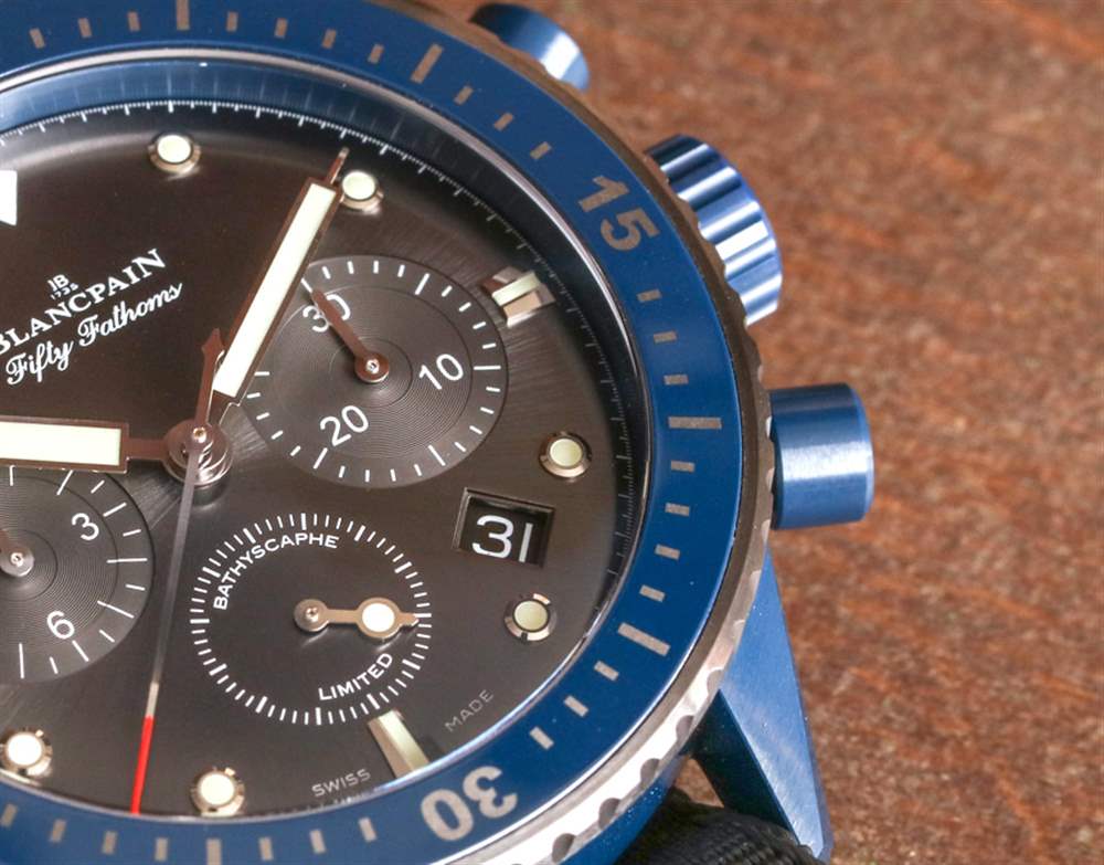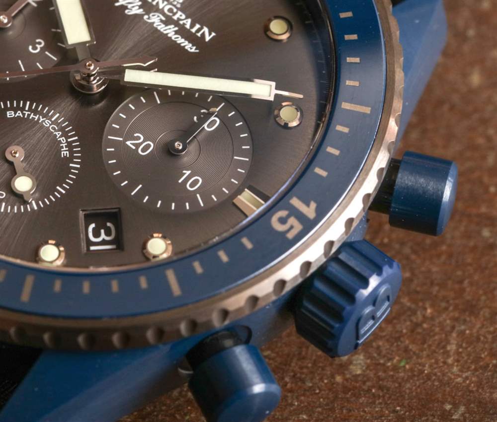 這一切聽起來都很棒,但不幸的是,我無法親自測試手表,因為我要玩的模型是“阻塞”的(機(jī)芯停止工作以保持手)原型。因此,我仍然渴望佩戴其中一款功能正常的腕表,并充分體驗寶珀五十噚深海飛返計時碼表 Ocean Commitment II。