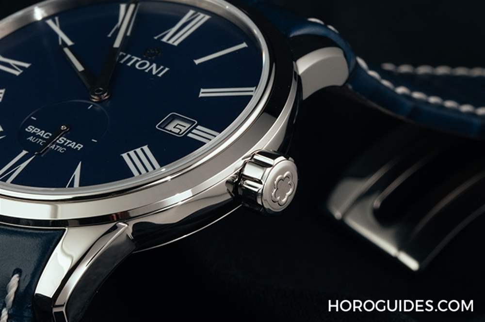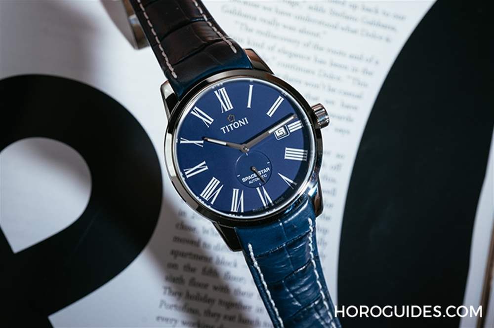 穿脫自如搭配的是鑲嵌梅花造型品牌Logo的折疊扣,40mm的尺寸大小適中你一定撐的住,套上西裝手腕一轉就是專業感,卷起袖子藍面到藍帶的齊一性與精致度,更看的出你的小講究。看對眼就會心動,打開錢包又不心痛,買一只實戴的表,從TITONI中選那有那么難?