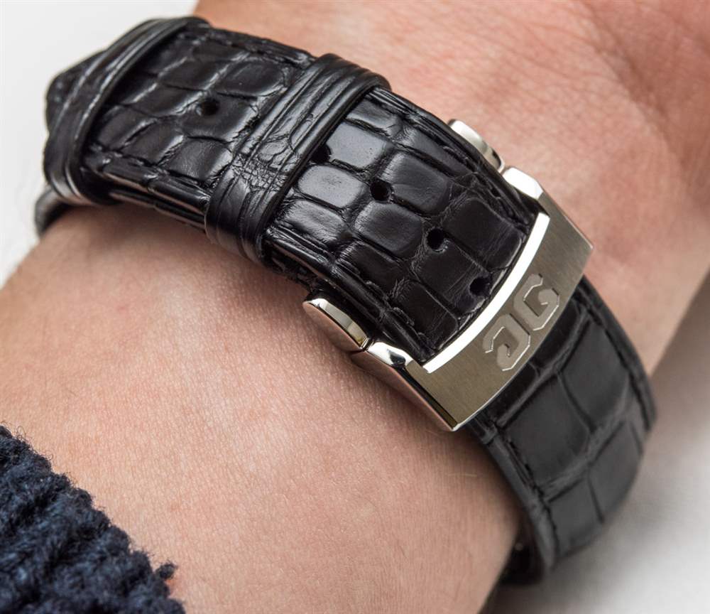 40 毫米寬的表殼尺寸也沒有變化,格拉蘇蒂原創參議員卓越大日歷和月相腕表在手腕上繼續看起來既帥氣又厚實。比只有時間的三手卓越參議員更厚,感覺就像一個堅固的 40 毫米,而不是小東西。但是,我會說,如果您是那種覺得 40 毫米是大表而 42 毫米寬太大的人,我建議您確保為手表選擇較短的表帶或選擇不使用折疊展開器扣,因為它不會像在光滑的黑色鱷魚皮表帶上帶有更傳統的針式針扣的手表那樣舒適。
