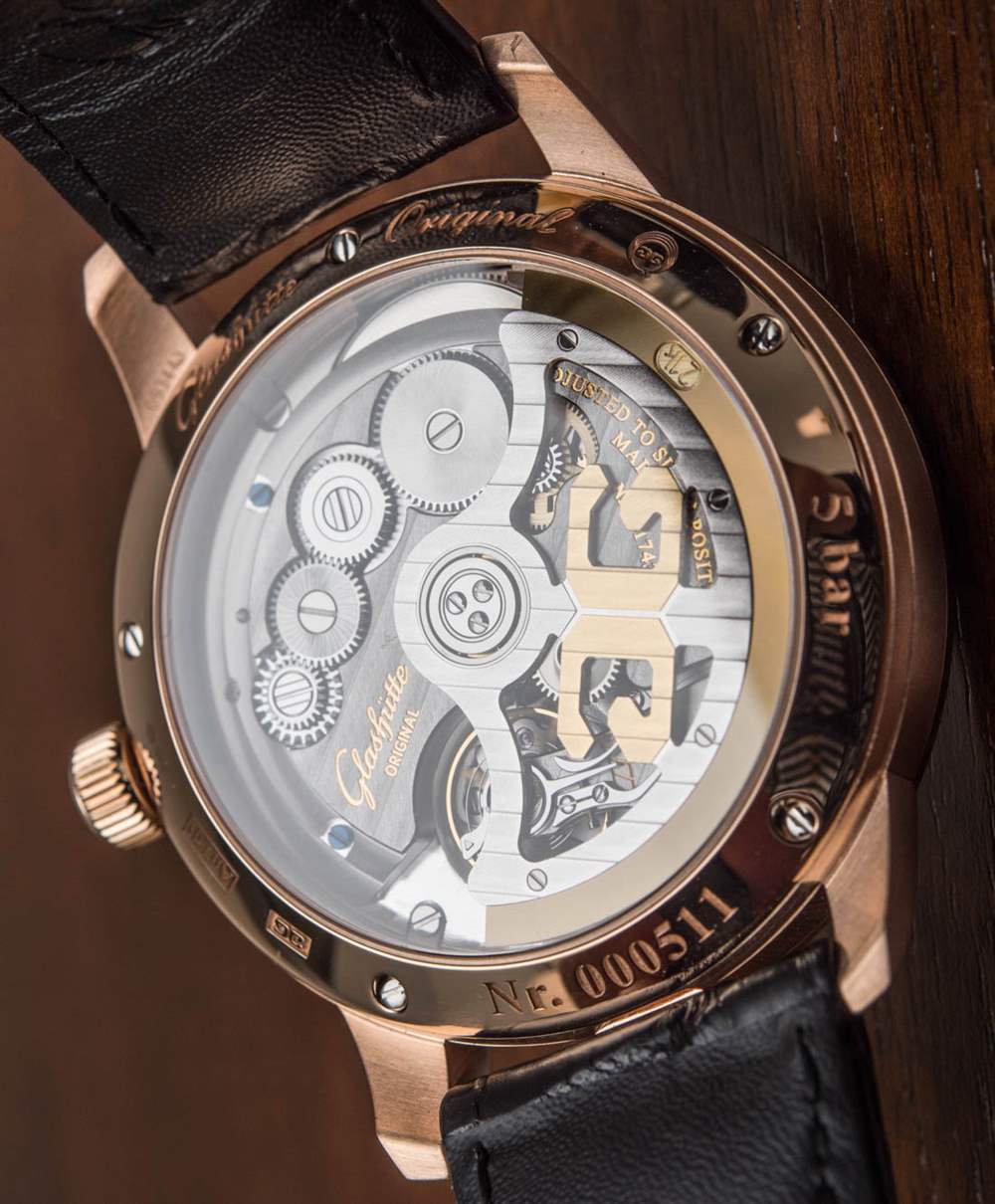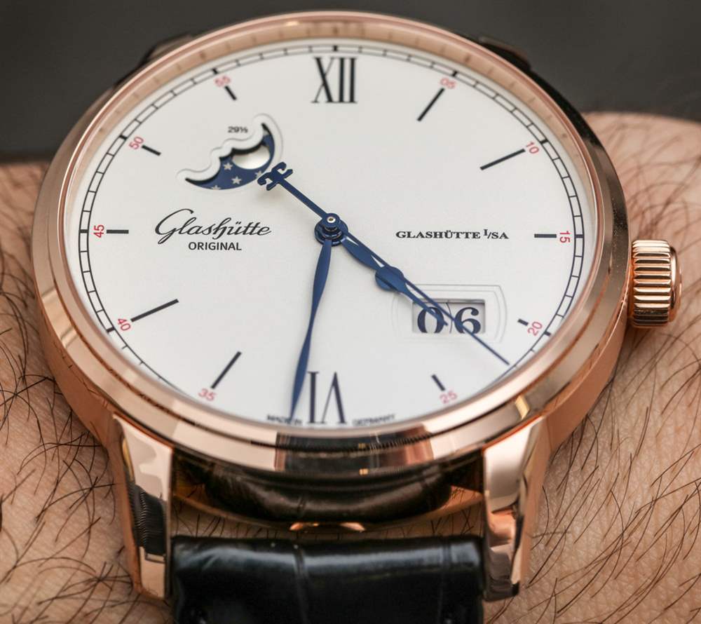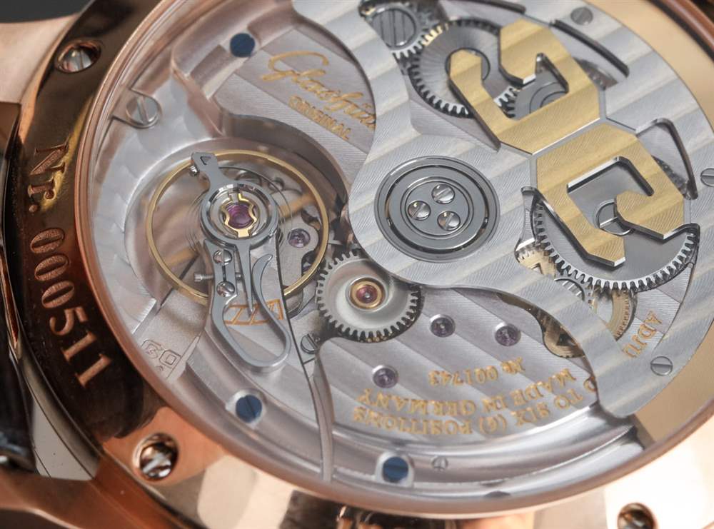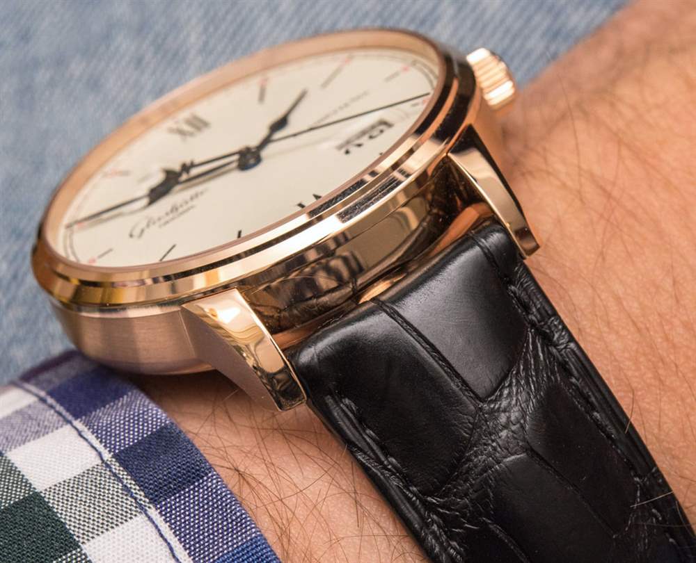 其他受歡迎的設計元素是對表盤設計的微調,略顯精致,非常帥氣。藍鋼指針尺寸完美,一切清晰易讀。部分原因是格拉蘇蒂原創在幾年前收購了他們的 Pforzheim 表盤供應商,并嚴格控制表盤生產(包括日期輪等),以最大限度地提高表盤的美觀和易讀性。請注意紅金表款表盤上的紅色點綴,營造出漂亮、略帶運動感的個性。對我來說,這個元素提醒我,這些不僅僅是漂亮的手表,也是德國手表傳統中的工具。