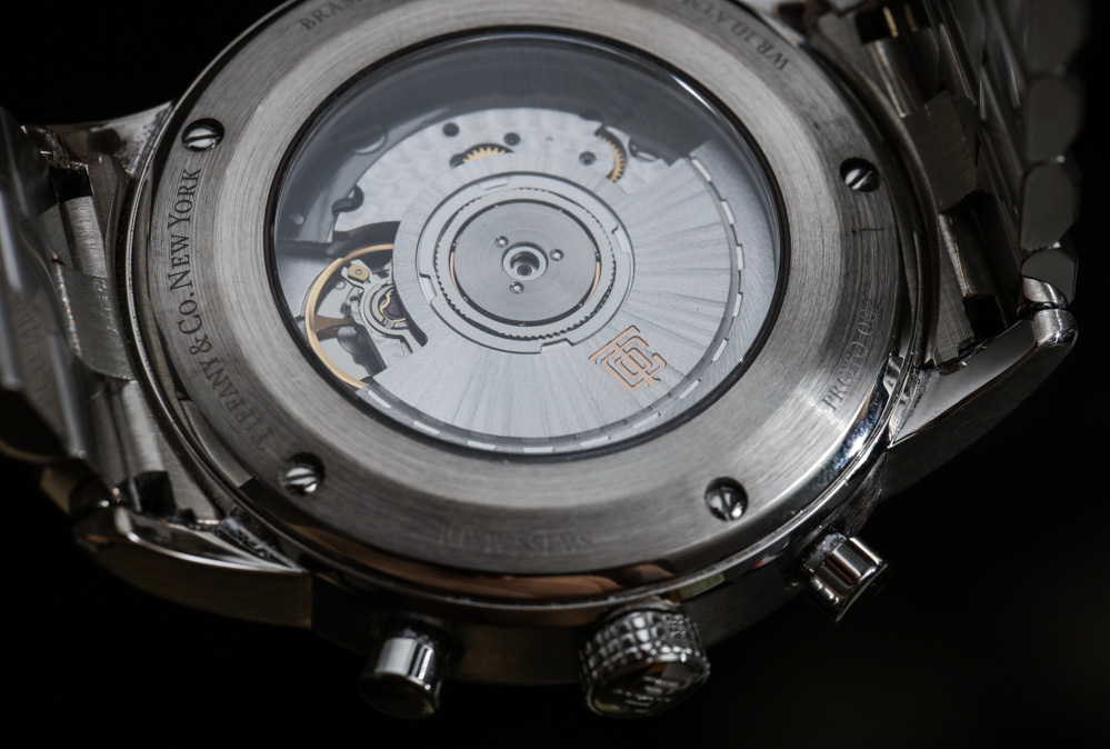 腕表內部搭載蒂芙尼 (Tiffany & Co.) 機芯 TCO.5959 自動上鏈機芯,由瑞士 Dubois Depraz 獨家研發。該機芯提供時間、日期指示表盤,以及 GMT 指針。如您所見,該表殼有像計時碼表一樣的按鈕,但這些按鈕用于向前或向后移動當地時間時針,以便您在旅行時輕松調整時間。GMT 指針未調整,繼續指示第二時區或您家鄉的“參考”時間。此外,表殼上還有一個小的嵌入式按鈕,可用于快速設置日期。因此,這里的價值在于為 GMT 腕表提供更多的用戶友好性,讓攜帶 Tiffany & Co. CT60 雙時區腕表的旅行變得更加輕松。