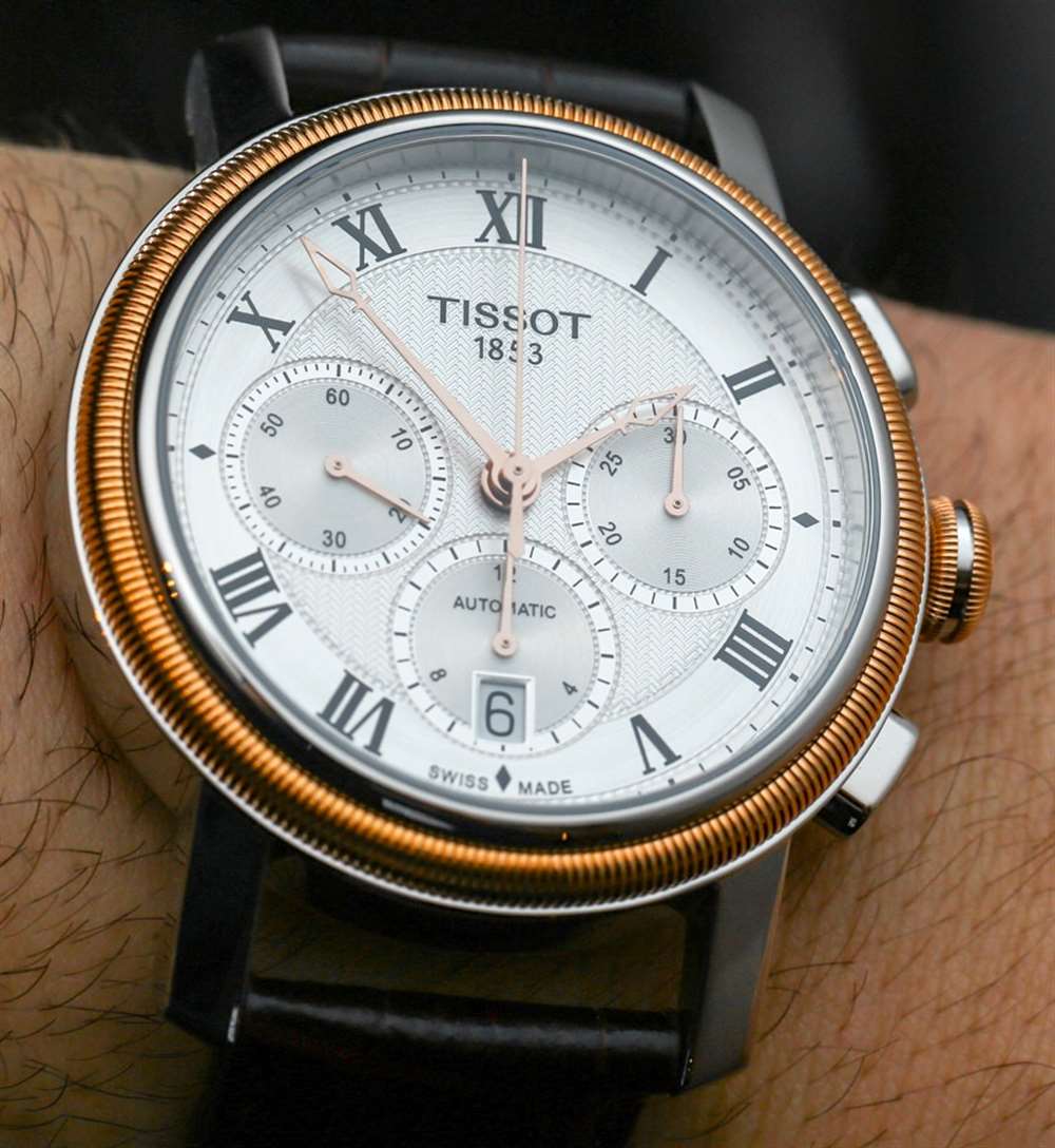 Tissot T-Classic 系列現(xiàn)在包括去年于 2015 年首次亮相的 Bridgeport Automatic Chronograph 手表。Tissot 目前提供四種不同版本的 Tissot Bridgeport Automatic Chronograph,它們將舊世界時(shí)計(jì)的外觀與現(xiàn)代尺寸和材料相結(jié)合。我經(jīng)常將此類手表稱為“寶璣寶貝”,因?yàn)樗鼈冊(cè)噲D模仿與高端奢侈手表制造商(恰好也屬于斯沃琪集團(tuán))相關(guān)的一些外觀。我說的是機(jī)器扭索紋雕刻風(fēng)格的表盤(在這種情況下可能是通過沖壓生產(chǎn)的)、表圈和表冠上的壓鑄邊緣以及指針和時(shí)標(biāo)的設(shè)計(jì)等元素。廣告留言廣告信息結(jié)束