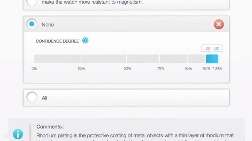 考試本身有三個證書,可以根據總分頒發證書——評分的方式有點有趣。評分并不像大多數其他考試那樣簡單,因為與大多數選擇題不同的是,您不會因為只回答正確的問題而獲得分數。相反,您在回答問題的同時指出您對該問題的信心程度。您會為您非常有信心的正確答案獲得最高分,但您也會為您知道可能不正確的錯誤答案獲得一些分數。這極大地改變了考生應對多項選擇考試的方式,我發現它非常有趣。