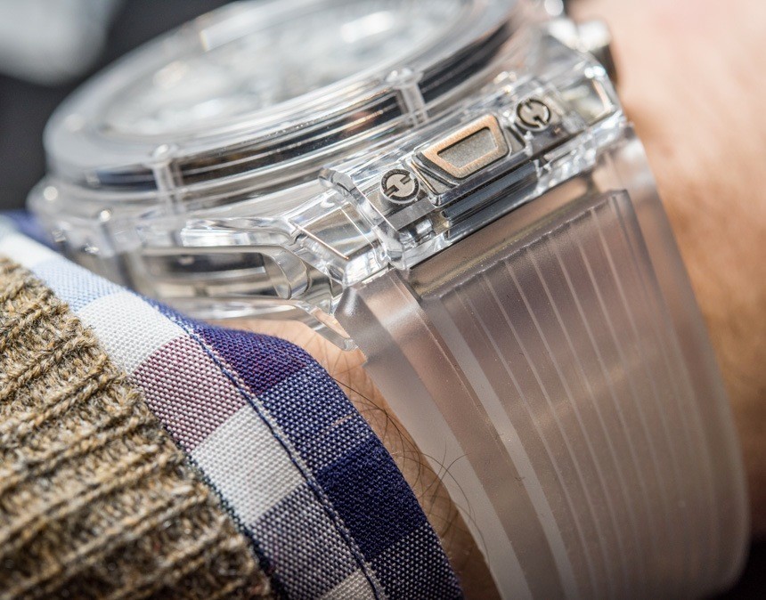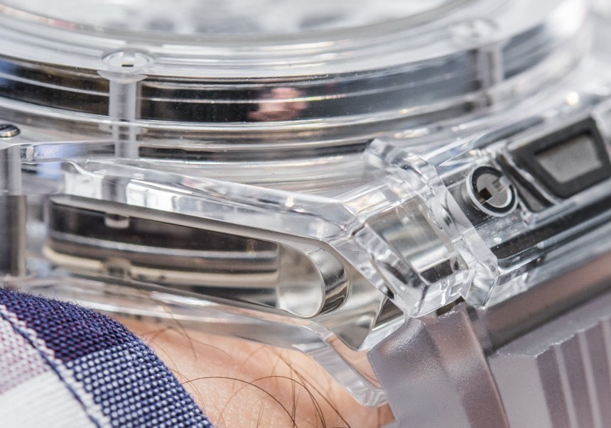 相反,我的問題是表帶。和其他一些人一樣,Hublot 覺得有必要用透明表帶來完成透明主題。雖然這些有助于完成效果,但我并不覺得它們特別有吸引力或必要。我會建議任何對這款超酷手表感興趣的人完全放棄表帶以換取他們想要的任何其他東西。透明無色手表的好消息是,您想要的任何表帶選擇都會適合它!