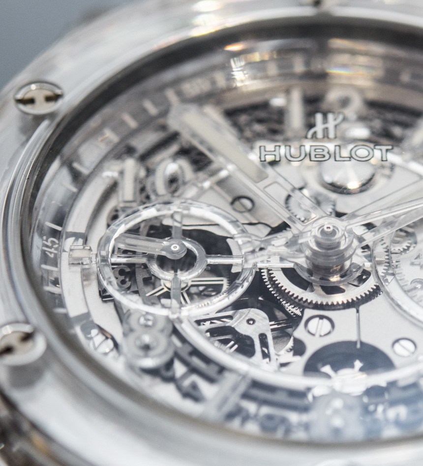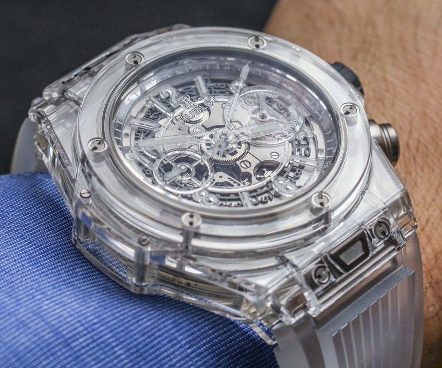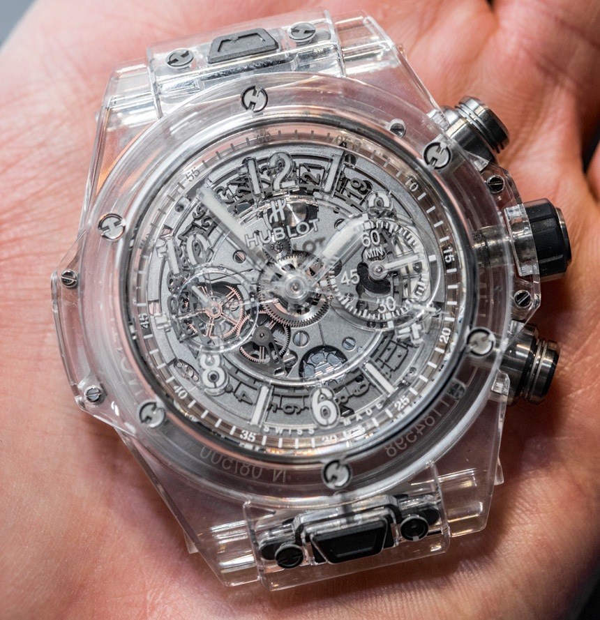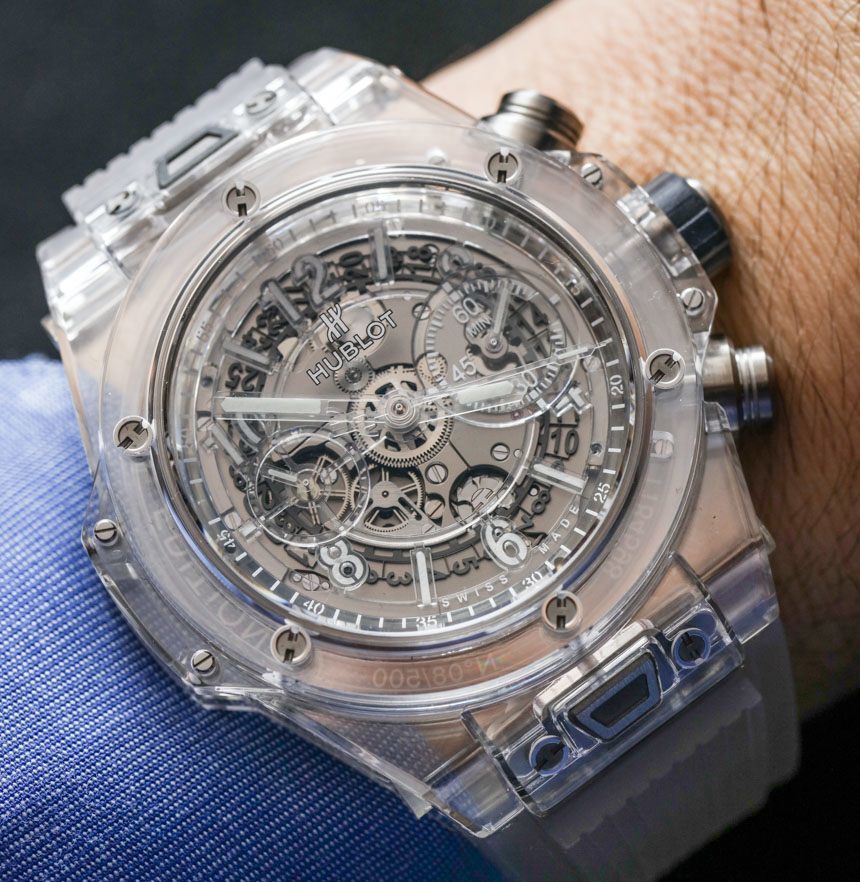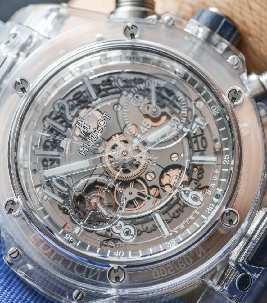 我在這里發布了關于 Hublot Big Bang UNICO 手表的完整aBlogtoWatch 評論,您可以在其中了解我個人對這個系列的更多看法。除了藍寶石水晶表殼和獨特的透明元素外,這款腕表在各個方面都是 Big Bang UNICO。表殼寬 45 毫米,防水深度達 100 米(值得驕傲),采用鈦合金螺絲。宇舶表自己不生產藍寶石水晶表殼,而是委托當地的“瑞士專家”供應商。廣告留言廣告信息結束