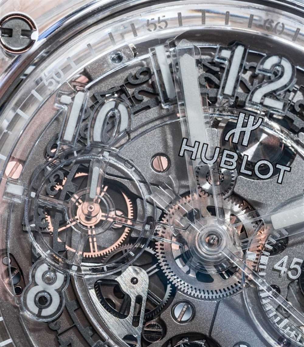 對于宇舶表來說,全黑手表的反義詞并不是全白手表。雖然有全黑的“幻影”Big Bangs,但我不記得有任何全白的模特。相反,具有諷刺意味的是,與保留“可見隱形”精神的全黑手表相反的是透明手表。聰明的。