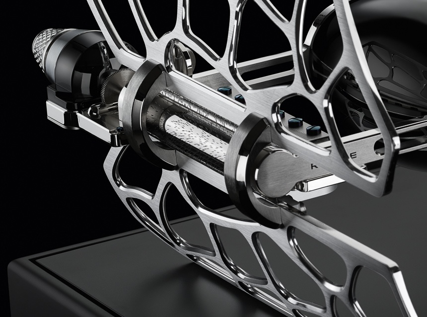從結構上看,MB&F MM3 TIE Fighter基本上是將兩個八音盒合二為一。每個滾輪桿都有自己的主彈簧和上弦系統。整個 MB&F MM3 坐落在一個具有 350 年歷史的木制“共振底座”上,該底座旨在放大聲音,讓您在每次帝國戰斗機宇宙飛船在您的辦公室播放教父主題時都能開心地微笑。給客人留下深刻印象。