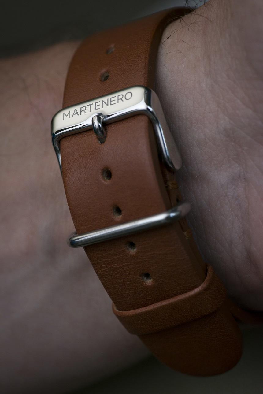 皮革和尼龍表帶均配有刻有 Martenero 品牌標(biāo)志的拋光帶扣,皮革表帶采用固定不銹鋼固定器和浮動(dòng)皮革固定器的有趣組合。在佩戴帶有兩條表帶的手表并在許多不同的社交場(chǎng)合中佩戴后,我開始喜歡它如何將運(yùn)動(dòng)風(fēng)格與整體優(yōu)雅外觀融為一體,使其成為任何場(chǎng)合的必備單品,具體取決于設(shè)置。