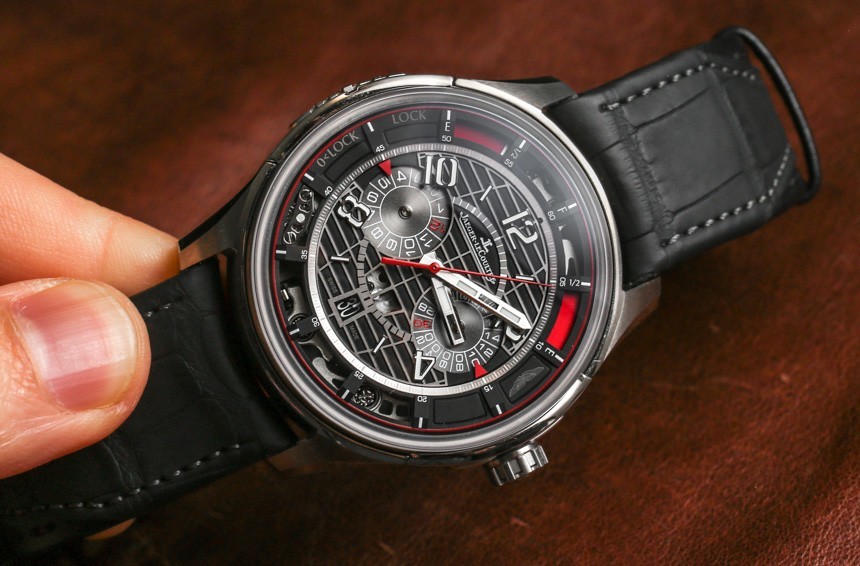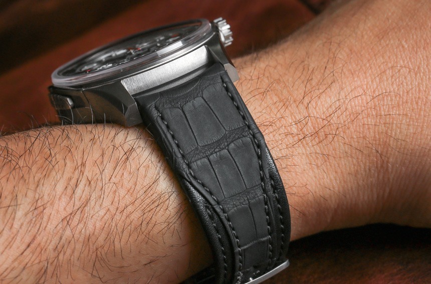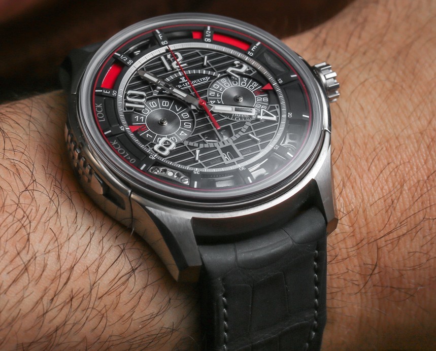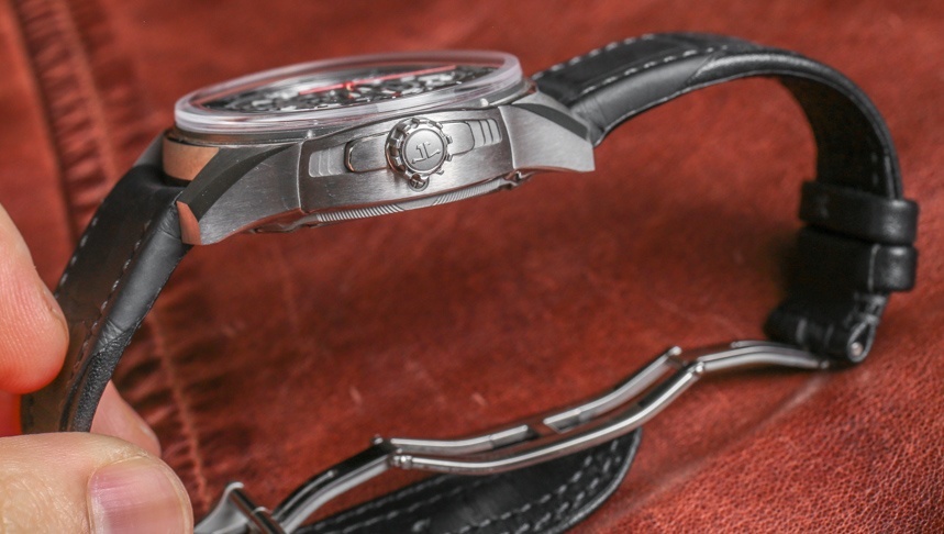表殼左側是一個開關,可讓您鎖定水晶表鏡,以免意外激活計時碼表——積家 AMVOX 7 ref 設計了一個我很欣賞的有用功能。194T470。實際上,我會借此機會向您指出我們在 2012 年首次發布 Jaeger-LeCoultre AMVOX 7 手表的原始文章,您可以在其中了解有關手表背景的更多信息。手表在視覺上很有趣,但當您佩戴它時,完整的體驗會帶來完全不同的欣賞方式。