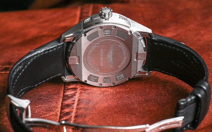 由于與阿斯頓·馬丁的關系,那些關注雙品牌時計的人完全不用擔心。與阿斯頓馬林的品牌整合最多是最小的。你能在表盤上看到阿斯頓馬丁的標志嗎?我給你一個提示;它位于表盤外側 2 點鐘和 3 點鐘時標之間。可能有些人已經戴了這只表幾個星期而沒有注意到這個小元素。表殼后部有更重要的阿斯頓馬丁品牌標志。