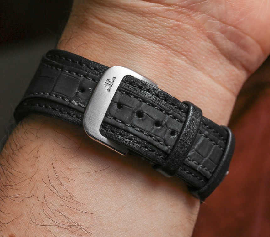 該表殼有自己的表帶快速釋放系統,該系統在表殼后部的每個點上采用小杠桿的形式。市面上有各種類型的快速釋放系統,讓人們無需工具即可更換肩帶。此類系統的一個問題是您只能使用 Jaeger-LeCoultre 提供的表帶。Jaeger-LeCoultre AMVOX 7 表帶非常復雜,但它也是完全定制的,因此您只能直接從該品牌獲得替換品或替代品。