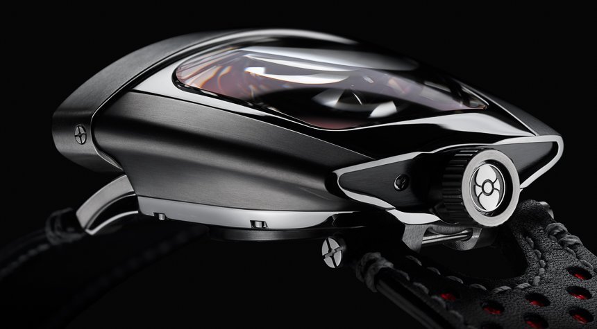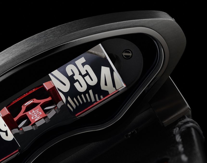 根據 MB&F 的說法,這些顏色的靈感來自賽車——MB&F HMX 整體??也是如此。MB&F HMX 與 HM5 手表一樣,是一款“楔形”駕駛員手表,其時間指示不是在手表的“頂部”,而是在側面。這個想法是,當你的手放在方向盤或其他類型的控件上時,你不需要移開或轉動你的手來讀取時間。與 HM5 一樣,MB&F HMX 使用藍寶石水晶棱鏡將顯示時間的圓盤的視角移到一邊,但執行方式略有不同。