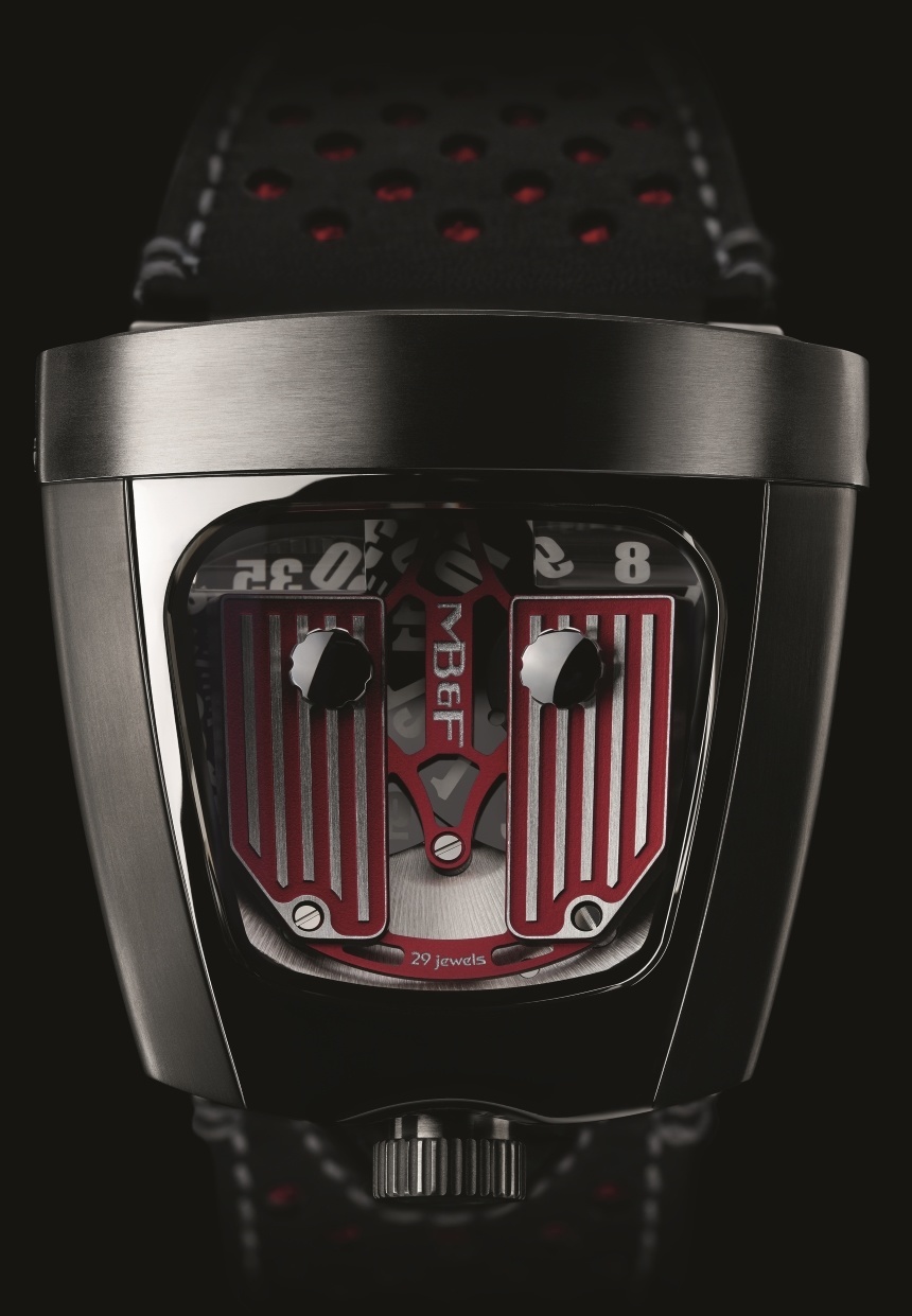 HM5 的靈感來自 1970 年代和 80 年代的跑車,而 MB&F HMX 實際上看起來像是 1960 年代及更早時期的汽車——特別是意大利賽車。顯然,MB&F 對 MB&F HMX 進行了多次設計,直到他們找到滿意的一款。我認為這是 MB&F HM5 與HM4的相遇。你能看到嗎?司機的手表混合了彎彎曲曲的線條。賽車靈感延續到可用的顏色選項中。其中包括蓮花黑、英國賽車綠、布加迪藍,當然還有法拉利紅(實際上只是 Rosso Corsa)。