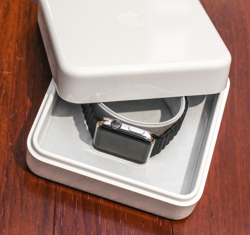任何熟悉購買手表的人都會(huì)立即認(rèn)出 Apple Watch 盒子看起來非常像傳統(tǒng)的手表盒子。Apple 并不注重節(jié)省空間,而是注重使用不會(huì)被丟棄的包裝材料提供真正的“優(yōu)質(zhì)”體驗(yàn)。擁有 Apple 筆記本電腦的人會(huì)發(fā)現(xiàn)盒子的形狀很熟悉,因?yàn)樗c Apple 為其 MacBook Air 和 MacBook Pro 筆記本電腦附帶的充電器非常相似。Apple Watch 包裝盒包含一個(gè)可用作儲(chǔ)物盒或旅行箱的塑料內(nèi)盒、一個(gè)小袋子(當(dāng)您調(diào)整鋼表鏈尺寸時(shí)可放置額外的鏈節(jié))、一塊超細(xì)纖維清潔布和充電線。