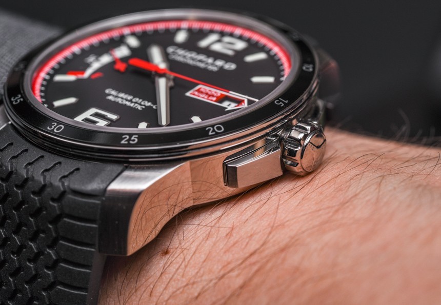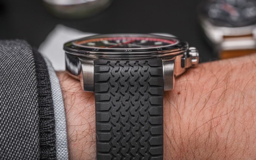 我知道有些人可能不完全喜歡這款手表的設(shè)計(jì),但在我看來,蕭邦再次將有趣的賽車主題與精致的風(fēng)格結(jié)合在一起,可以日常佩戴。Chopard Mille Miglia GTS Power Control 和 Automatic 的表殼寬 43 毫米,而計(jì)時(shí)碼表的表殼寬 44 毫米。我們終于也有了 100 米的防水性能。橡膠表帶看起來有點(diǎn)新,并且本著蕭邦 Mille Miglia 系列的精神,具有 1960 年代鄧祿普輪胎的質(zhì)感。
