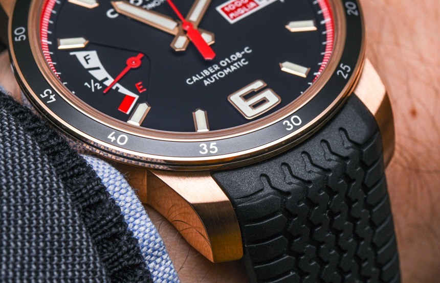 我過去一直很清楚我對(duì)大多數(shù)蕭邦賽車風(fēng)格手表的欣賞。我喜歡大膽的外觀、清晰的表盤、顏色的使用和清晰的細(xì)節(jié)。在這里,您可以看到 2015 年蕭邦 Mille Miglia GTS 系列的設(shè)計(jì)主題略有更新,其中包括 12 點(diǎn)鐘和 6 點(diǎn)鐘時(shí)標(biāo)的更新數(shù)字,以及其他調(diào)整。我們還看到了帶有分鐘指示器的薄邊框設(shè)計(jì),提供了更復(fù)古的外觀。雖然表圈設(shè)計(jì)不錯(cuò),但蕭邦繼續(xù)使用鋁作為嵌件——許多其他品牌在這個(gè)價(jià)位上已經(jīng)轉(zhuǎn)向更耐用的材料,比如陶瓷。