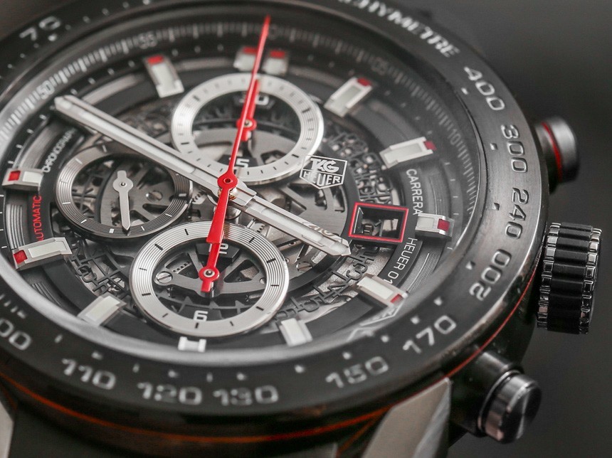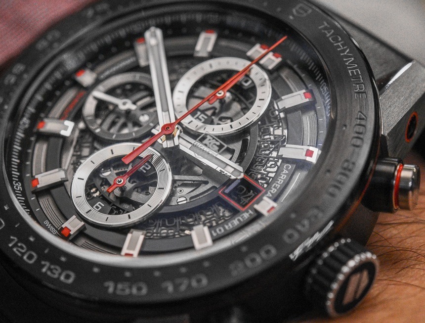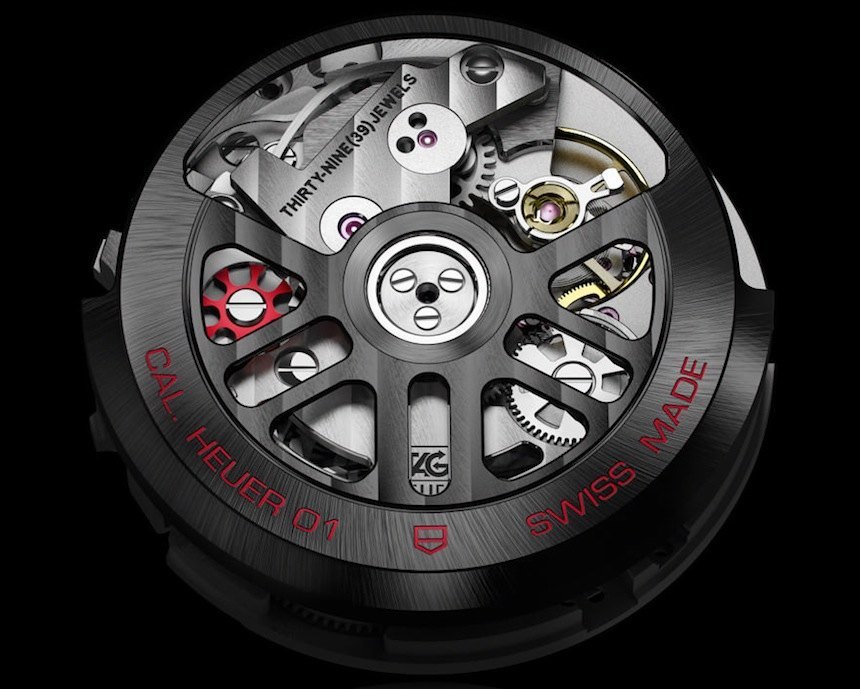 讓我們討論一下 TAG Heuer Calibre Heuer 01 機芯。你需要知道的是,從結(jié)構(gòu)上看,它或多或少是一枚現(xiàn)有的豪雅自制calibre 1887自動計時機芯。然而,它被稍微鏤空并賦予了一些新的顏色(比如醒目的紅色導(dǎo)柱輪),變成了 Heuer 01。它不會取代 1887,只是在以2015 年泰格豪雅 Calibre Heuer 01 腕表。