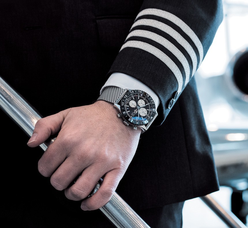 百年靈 Chronoliner 防水深度達(dá) 100 米,并配有鍍增透膜的藍(lán)寶石水晶表鏡。手表內(nèi)部是百年靈24口徑,這是瑞士ETA Valjoux 7754。這是一款帶有GMT指針的Valjoux 7750自動計時碼表。7754 以 4Hz 運行,有大約兩天的動力儲備。百年靈 Chronoliner 腕表的機芯均通過 COSC Chronometer 認(rèn)證。該機芯提供帶 12 小時計時碼表和日期的時間。我真的很高興看到百年靈選擇為百年靈 Chronoliner 使用 ETA 機芯,而不是他們內(nèi)部制造的機芯之一。