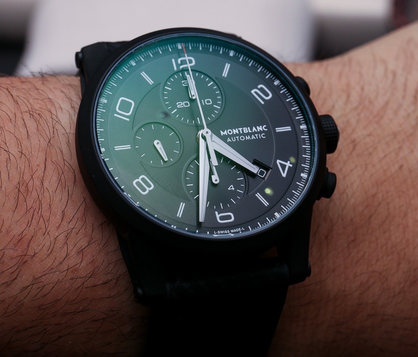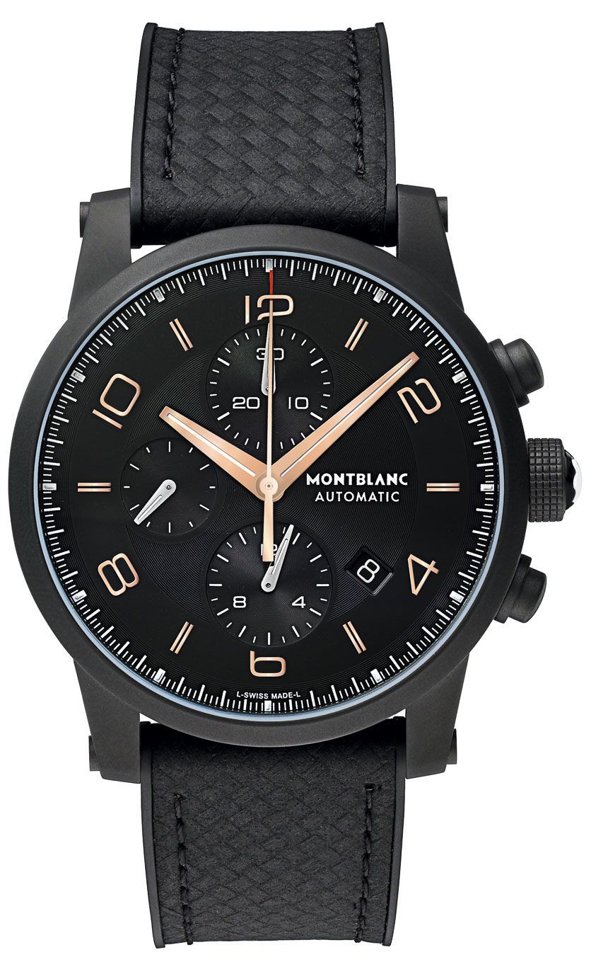 2014 年的 Timewalkers 是Timewalker Chronograph 100和這款 Montblanc Timewalker Extreme 參考。111197。我們再次看到萬寶龍在 Timewalker 表殼上試驗 DLC 涂層。Timewalker 表殼寬 43 毫米,形狀有點像碗,充滿了有趣的細節,戴在手腕上很討人喜歡。萬寶龍并不是唯一一個想要采用成功的表殼設計并提供黑色的人。這款萬寶龍 Timewalker Extreme 絕不是他們第一次這樣做,但這個特殊版本提供了啞光而非拋光的黑色飾面。DLC 涂層非常堅硬且高度耐刮擦。