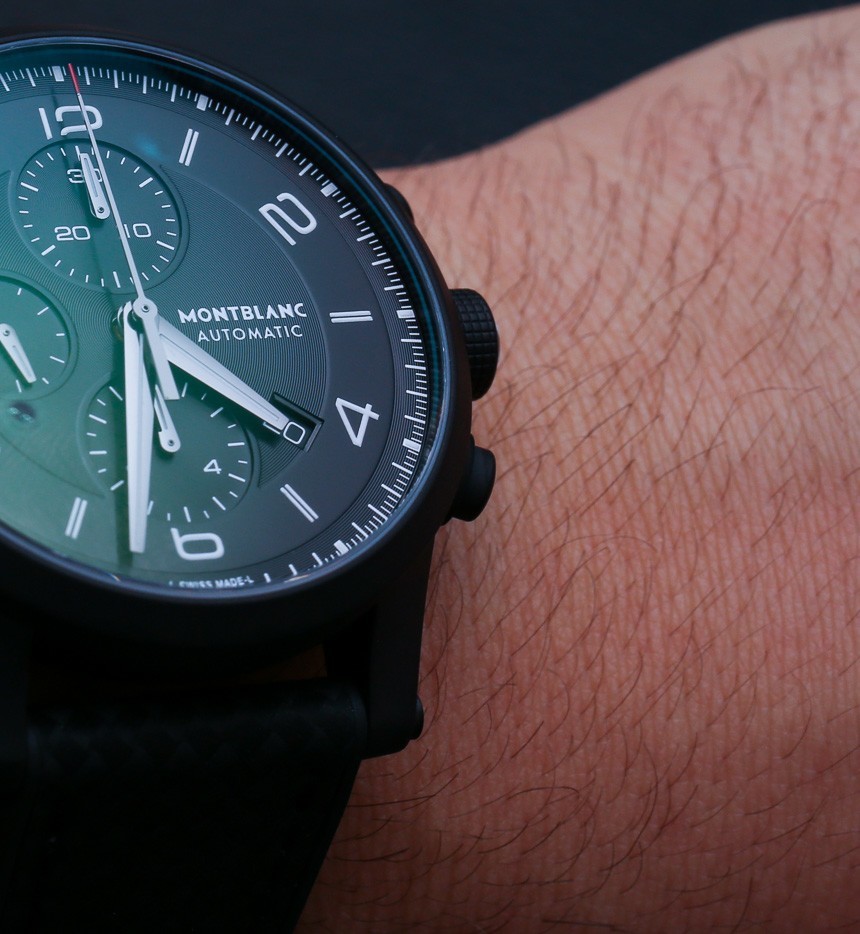啞光黑色 DLC 與拋光黑色 DLC 的優點在于,它不會拾取幾乎一樣多的指紋,而且它確實有一種“酷男”的外觀,而拋光黑色手表并不總是首選的男性選擇,盡管它是更艷麗一點。萬寶龍甚至稱贊萬寶龍 Timewalker Extreme 腕表配備了在其他一些產品中使用的高檔皮革/橡膠表帶。表帶還具有啞光效果,表面有一種紡織圖案。