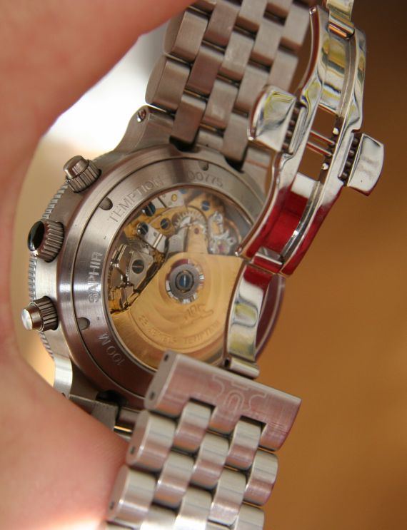Valjoux 7751 基于非常受歡迎的 Valjoux 7750 計時碼表。7751 增加了多項復雜功能,包括:月相、同步 24 小時時間指示器、帶月份、星期和日期的完整日歷。7751 當然是自動的,而 Temption 提供了一個可愛的透明底蓋。我的版本有黃金或鍍金版本的機芯,但我見過只有鋼的機芯。總的來說,機芯不是這篇評論的主題,但我對它很滿意。很多時候,機芯的復雜性需要一些古怪的操作。例如,校正日期的系統可以更直觀,但這是機芯的問題,而不是手表的問題。