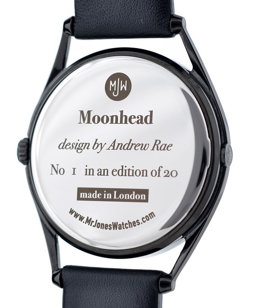 Mr. Jones Watches 與大多數本地藝術家合作制作 Face Timers 手表。第一款手表名為“Moonhead”,由藝術家兼作家 Andrew Rae 設計,基于他的書Moonhead 和音樂機器中的 Joey Moonhead 角色。考慮到優雅和友好的主題,這可能是我最喜歡的 Mr. Jones Face Timers 手表。在這里,時間通過一個小太空艙作為時針指示,宇航員作為分針指示。一個有趣的小細節是,月亮角色的眼睛是分鐘指示盤的一部分,旨在“跟隨”宇航員,因此月亮似乎一直在注視著他。