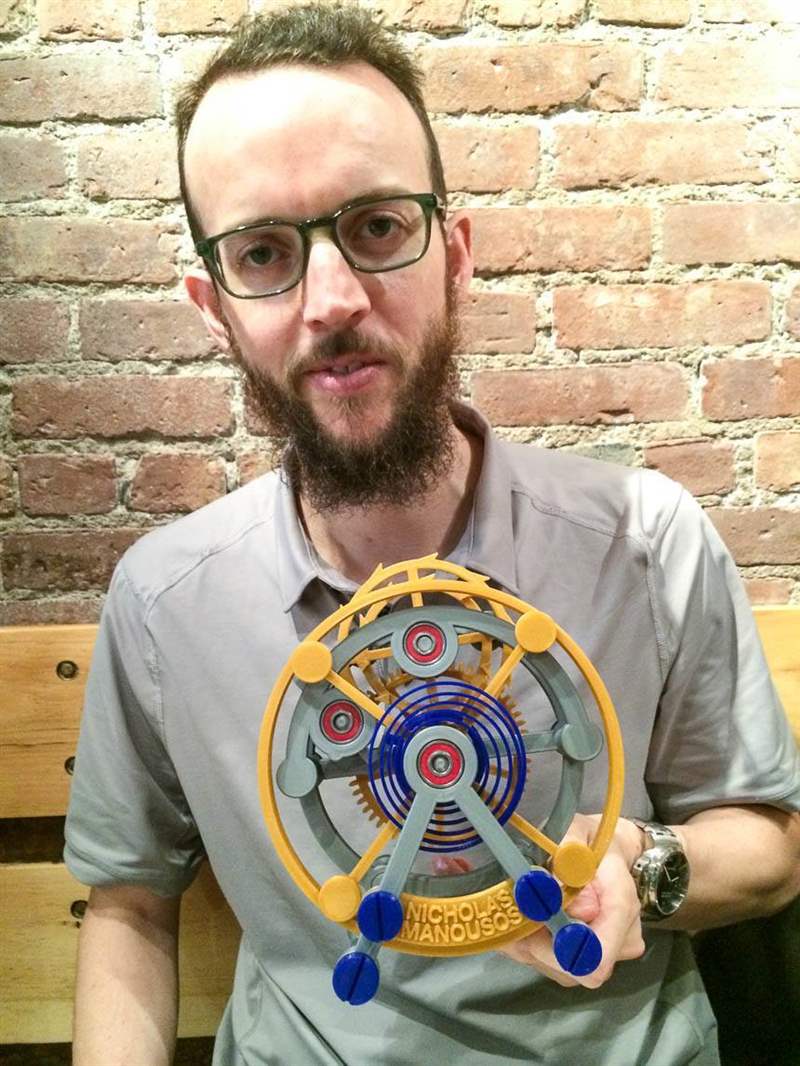 Nicholas Manousos 生產 Tourbillon 1000% 并非僅僅是 3D 打印愛好的延伸。Manousos 在當今的鐘表愛好者中有著獨特的故事。幾年前,當我第一次與他交談時,他住在舊金山,是一名軟件工程師。他的夢想是成為一名鐘表匠。不是因為奢侈或珍貴的材料,也不是因為以他的名字打造手表,而是因為對手表機械工程元素的深刻欣賞。