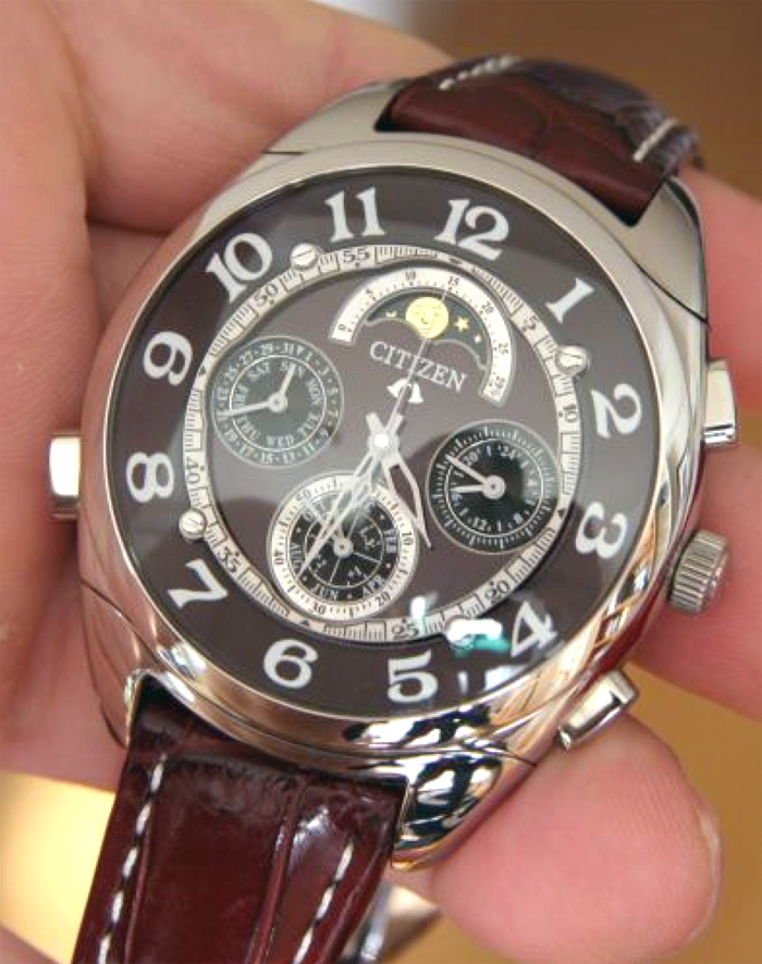 對(duì)于鐘表愛好者來說,腕表的機(jī)芯是第一要?jiǎng)?wù)。公民坎帕諾拉是石英機(jī)芯,本質(zhì)上不是“機(jī)械的”。大多數(shù)投資此類手表的人都需要完全機(jī)械的手表,因?yàn)橛幸环N預(yù)感石英手表很便宜。在大多數(shù)情況下可能是這樣,但西鐵城在這款手表中使用石英機(jī)芯是正確的。原因是水平復(fù)雜。一枚機(jī)械表能完成西鐵城坎帕諾拉大復(fù)雜功能腕表所能做的一切,至少要8萬美元。主要復(fù)雜功能的簡要列表包括:時(shí)間顯示、帶閏年的完整萬年歷、12 小時(shí)計(jì)時(shí)碼表、月相指示器以及報(bào)時(shí)機(jī)制,如果您能閱讀簡單的代碼,它會(huì)在一系列報(bào)時(shí)聲中告訴時(shí)間。所有這些功能在機(jī)械機(jī)芯中都是可能的,但很少見且非常昂貴。