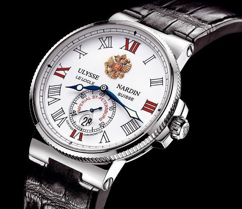 手表本身基于Maxi Marine型號。像雞蛋一樣,它有一個琺瑯表盤,帶有彩繪數字和圣彼得堡鷹盾。限量版腕表限量發行30枚,每枚均以鉑金制成,透過表背窗口可見金擺陀。內部是雅典表UN-26機芯。自動機芯經天文臺認證。此外,手表具有200m的防水性能;有人潛水尋找魚子醬嗎?