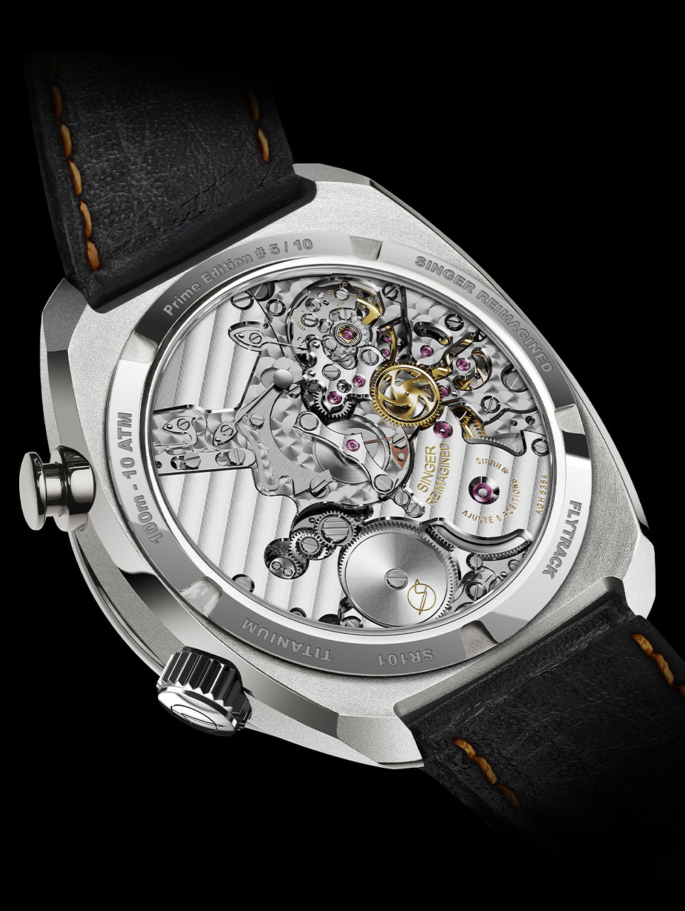 最后,盡管這家日內(nèi)瓦制表師以加利福尼亞保時捷 911 修復師的功績?yōu)榛A,以全新的 Singer Reimagined Flytrack 打破了鐘表界的沉默。是的,那是帶有“tr”的 Flytrack,盡管與另一個制表術語的相似之處是非常有意的。