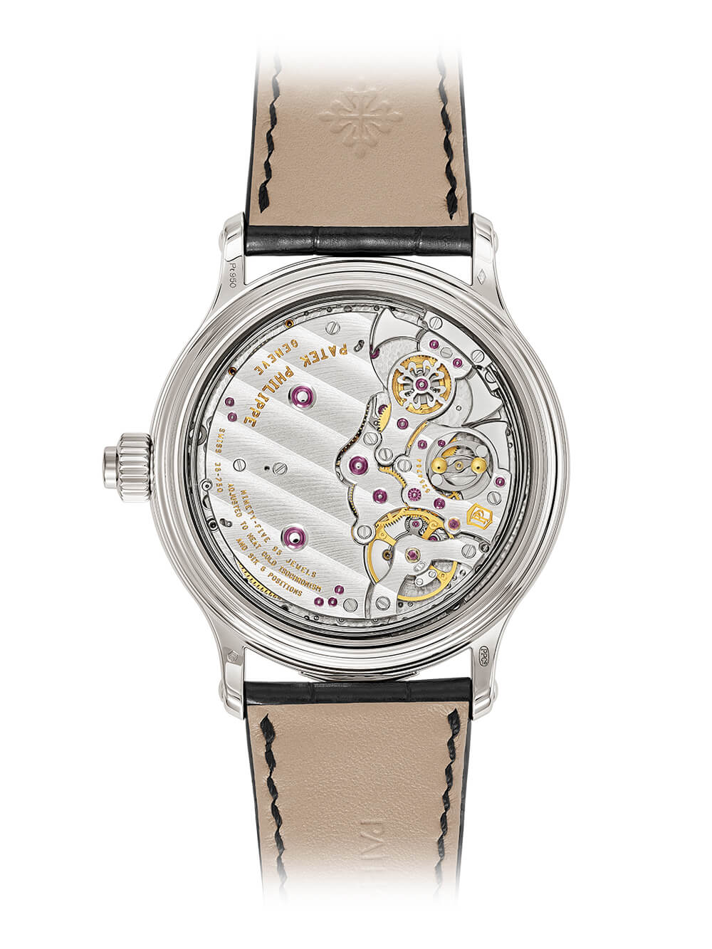 機芯: Calibre GS 36-750 PS IRM,37mm x 7.5mm,手動上鏈,95 顆寶石,703 個零件,百達翡麗印章 頻率: 25,200 vph (3.5 Hz)動力儲存: 72 小時(機芯),24 小時(罷工)功能: