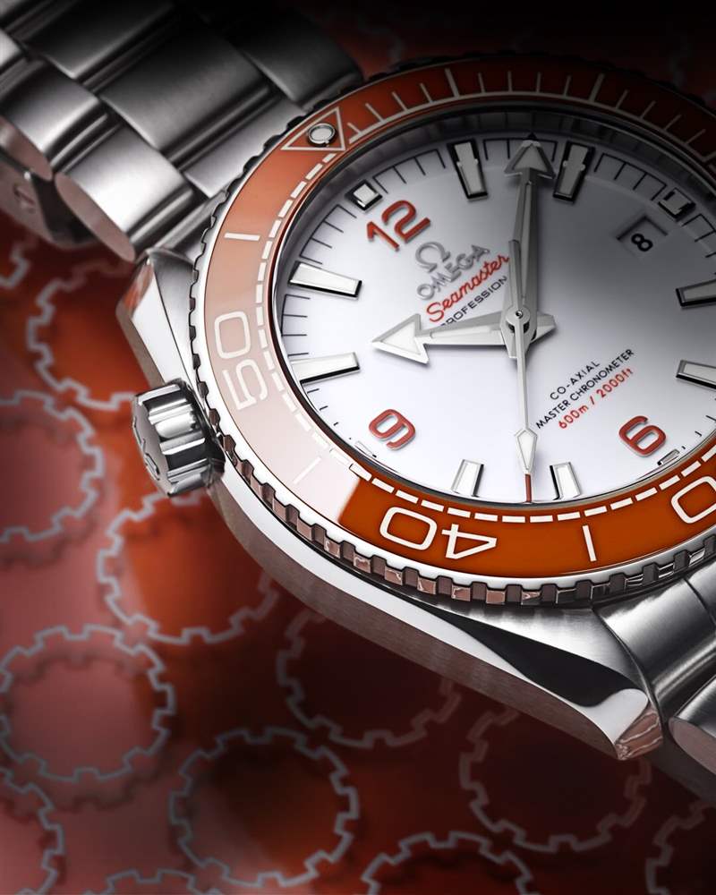 當然,更加專業(yè)的潛水表愛好者或許會將海洋宇宙600米表43.5毫米至臻天文臺鋼殼搭配 NATO 表帶款當作更適合日常佩戴的選擇,考慮到該表16.1毫米的厚度比前者的14.5毫米某些大出不少,選擇牢固而輕巧的 NATO 表帶就更加保證了其長時間佩戴的舒適性。白色陶瓷表盤上貼鑲橙色阿拉伯數字時標,帶有橙色陶瓷的單向旋轉表圈上的潛水刻度覆以液態(tài)陶瓷和 Super-LumiNova 夜光涂層,顯然它不僅色彩艷麗、反差強烈,而且在陽光明媚的夏天特別應景,無論是在陸地還是水中都十分具有存在感。