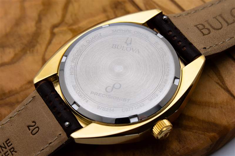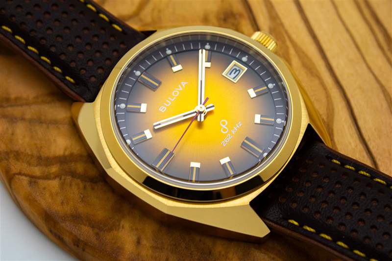 雖然 Bulova Jet Star 的金色不銹鋼表殼紙面寬度為 40 毫米,但由于表耳相對較短,實際上手表的佩戴寬度接近 38 毫米。這種形式也有裸露不銹鋼材質可供選擇,它跨越了緩和的傾斜曲線和寬角平面之間的界限。整體輪廓隱約呈八角形(與 1973 年原版的連續圓形曲線相反,但八角形表殼設計如今隨處可見),每個垂直拉絲表殼側面都分為三個不同的面。在此之上,上表殼表面和表耳由寬闊、突然張開的拋光平面塑造而成,提供了突出、明亮的反光表面,展示了金色表殼材料的溫暖和光澤。然而,寶洛華 (Bulova) 的目光超越了這些大元素,并將令人印象深刻的深思熟慮的細節融入到捷星航空設計的細節中。其中最令人印象深刻的是傾斜拋光表圈的下方。表圈與拋光上殼表面倒角之間的細長材質環并非簡單的拉絲或拋光飾面,而是采用獨特的旭日紋拉絲處理,與直射光線下表盤的旭日紋圖案相呼應,營造出統一的感覺。無論好壞,Bulova 對 Jet Star 的底蓋采用了忠實的老式方法,其特點是淺色、簡單的雕刻和略顯不足的 50 米防水性能。表圈與拋光上表殼表面倒角之間的細長材質環頂部飾有獨特的旭日紋拉絲,與直射光線下表盤的旭日紋圖案相呼應,營造出統一的感覺。無論好壞,Bulova 對 Jet Star 的底蓋采用了忠實的老式方法,其特點是淺色、簡單的雕刻和略顯不足的 50 米防水性能。表圈與拋光上表殼表面倒角之間的細長材質環頂部飾有獨特的旭日紋拉絲,與直射光線下表盤的旭日紋圖案相呼應,營造出統一的感覺。無論好壞,Bulova 對 Jet Star 的底蓋采用了忠實的老式方法,其特點是淺色、簡單的雕刻和略顯不足的 50 米防水性能。廣告留言廣告信息結束